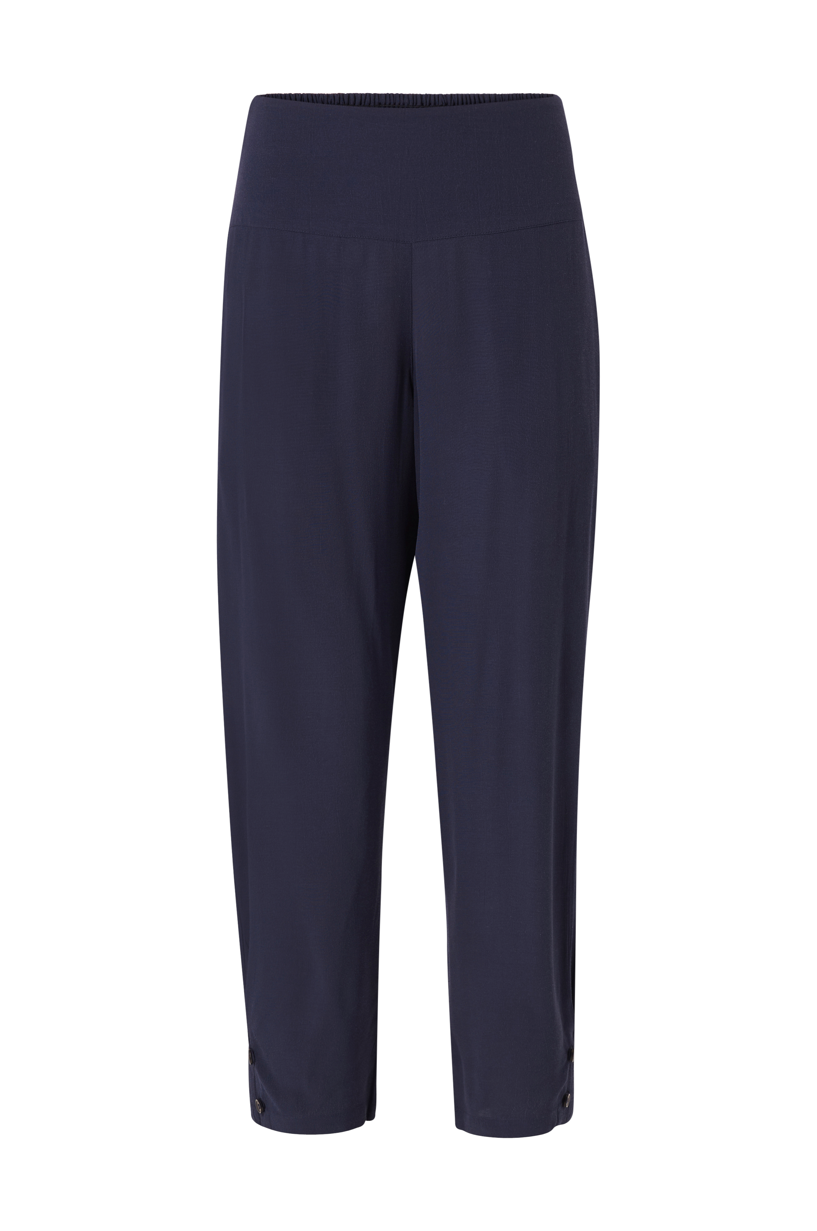 • Byxor i viskos• Croppad modell• Smock bak i midjan• Fickor i sidorna• Dekorativa knappar i bensluten
