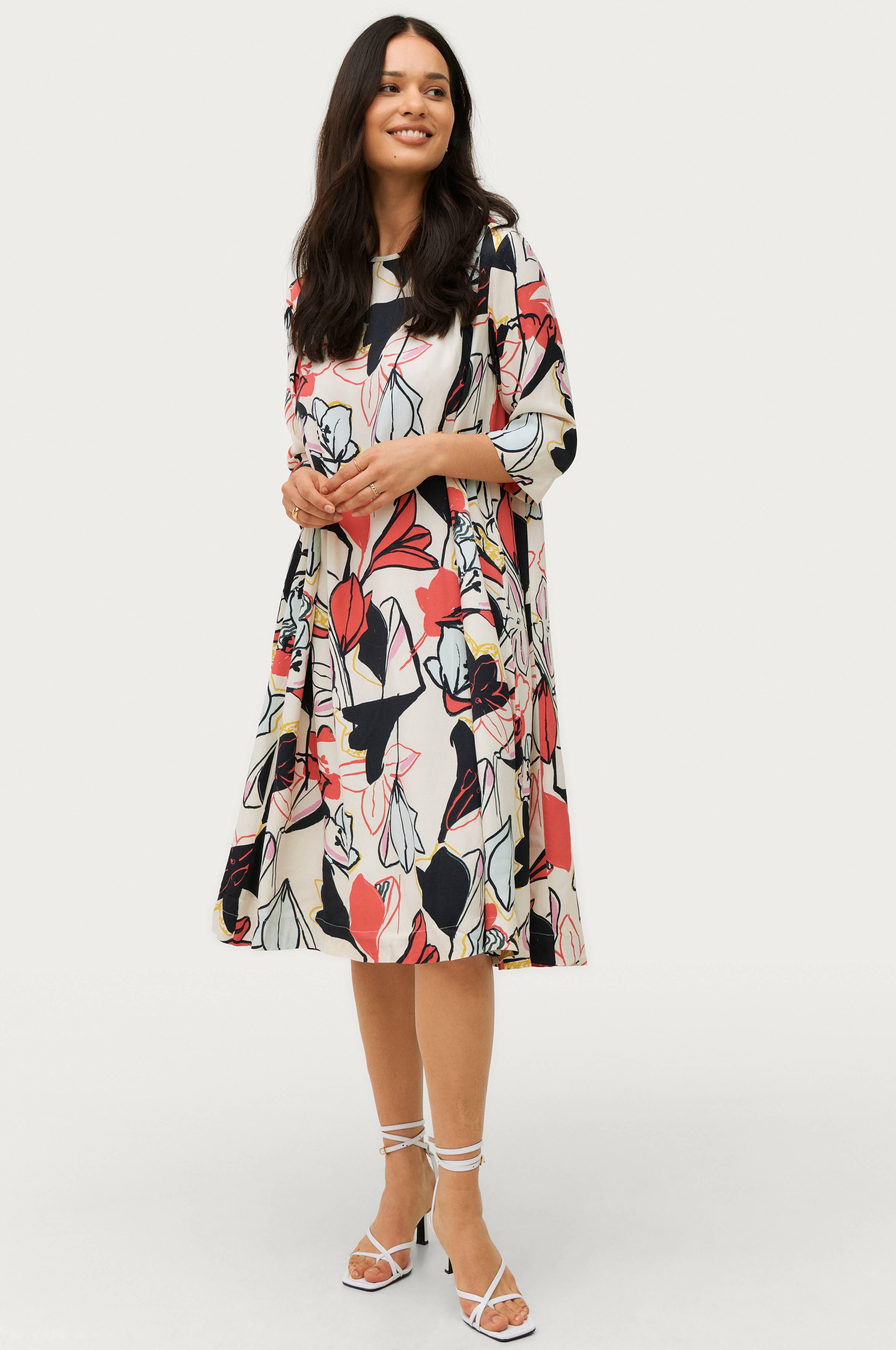 • Vid a-linjeform• 3/4-långa ärmar• Gjord av mjuk viskos• Längd: 117 cm i storlek S