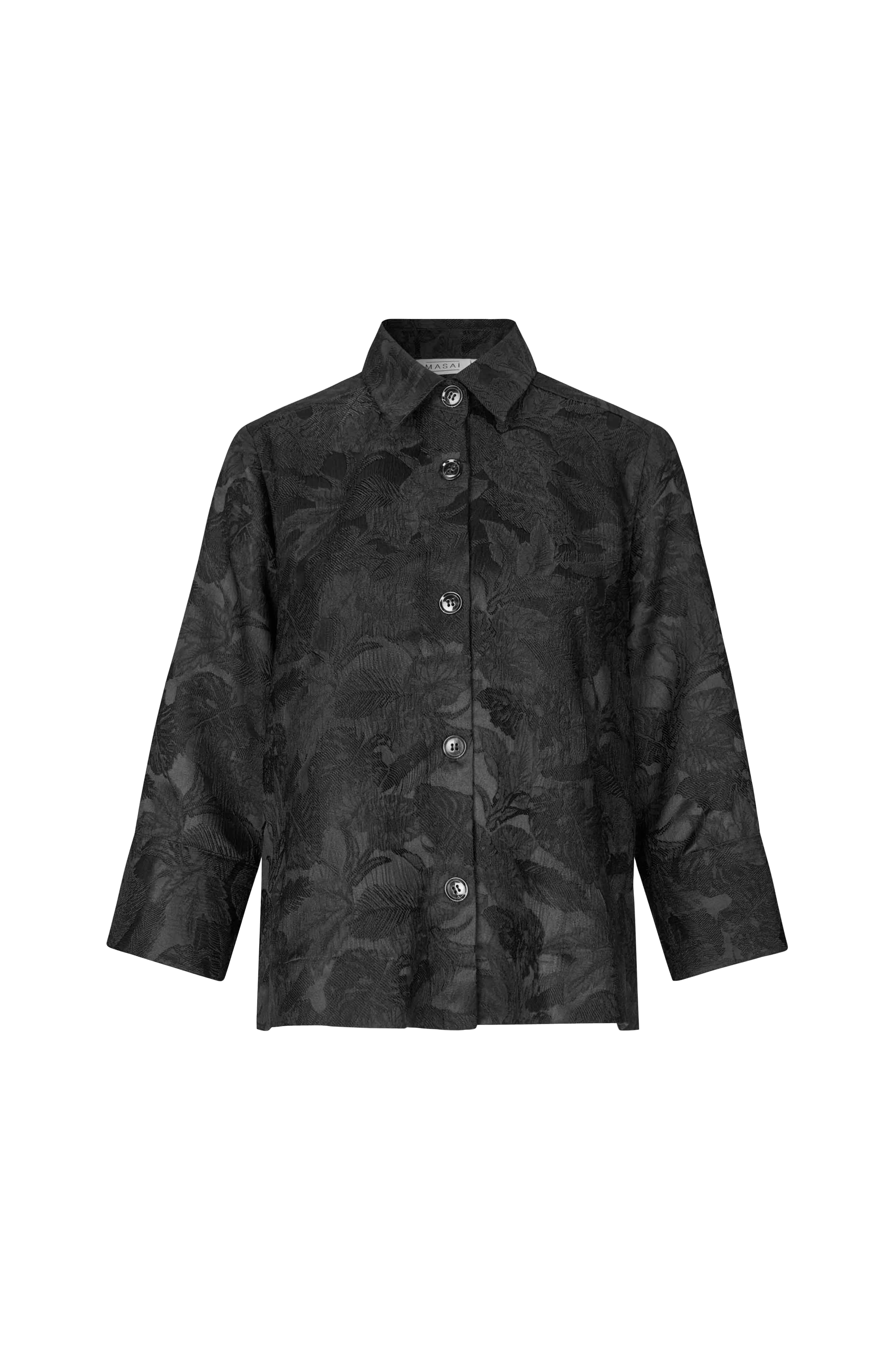 • Skjorta med vävt blommönster• Dekorativa knappar fram• Vida, 3/4-långa ärmar med breda manschetter• A-linjeformad design
