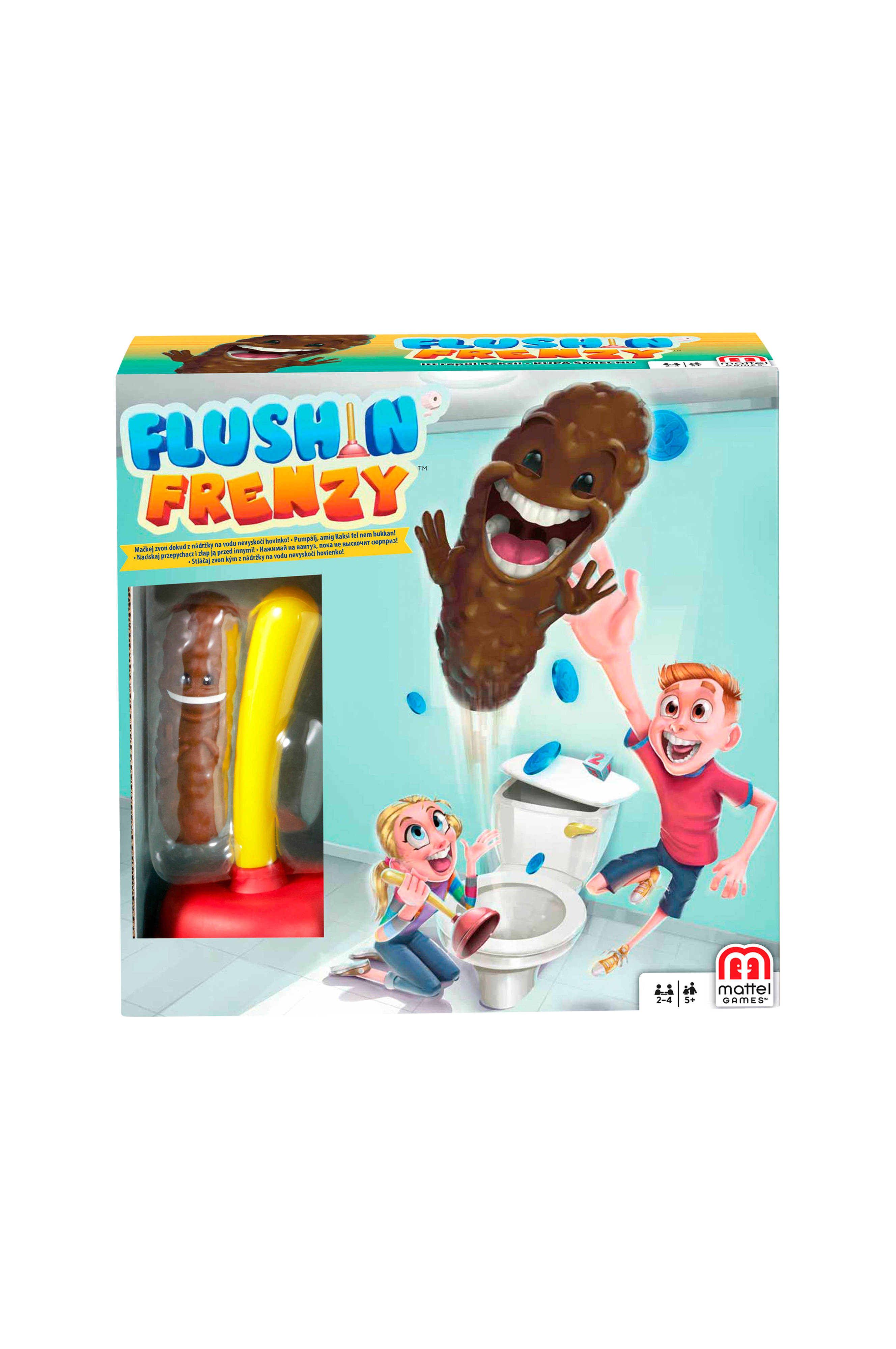 Spola med handtaget för att rulla tärningen och när siffran visas ska du rensa toaletten det antal gånger som siffran anger. Men var försiktig för när du trycker på vaskrensaren kan bajskorven när som helst FLYGA UT UR TOALETTEN! Den spelare som först fångar bajskorven får en pollett. Om du är så snabb att du fångar den i luften, får du TVÅ polletter! Spelaren som har fått flest polletter i slutet vinner spelet!
