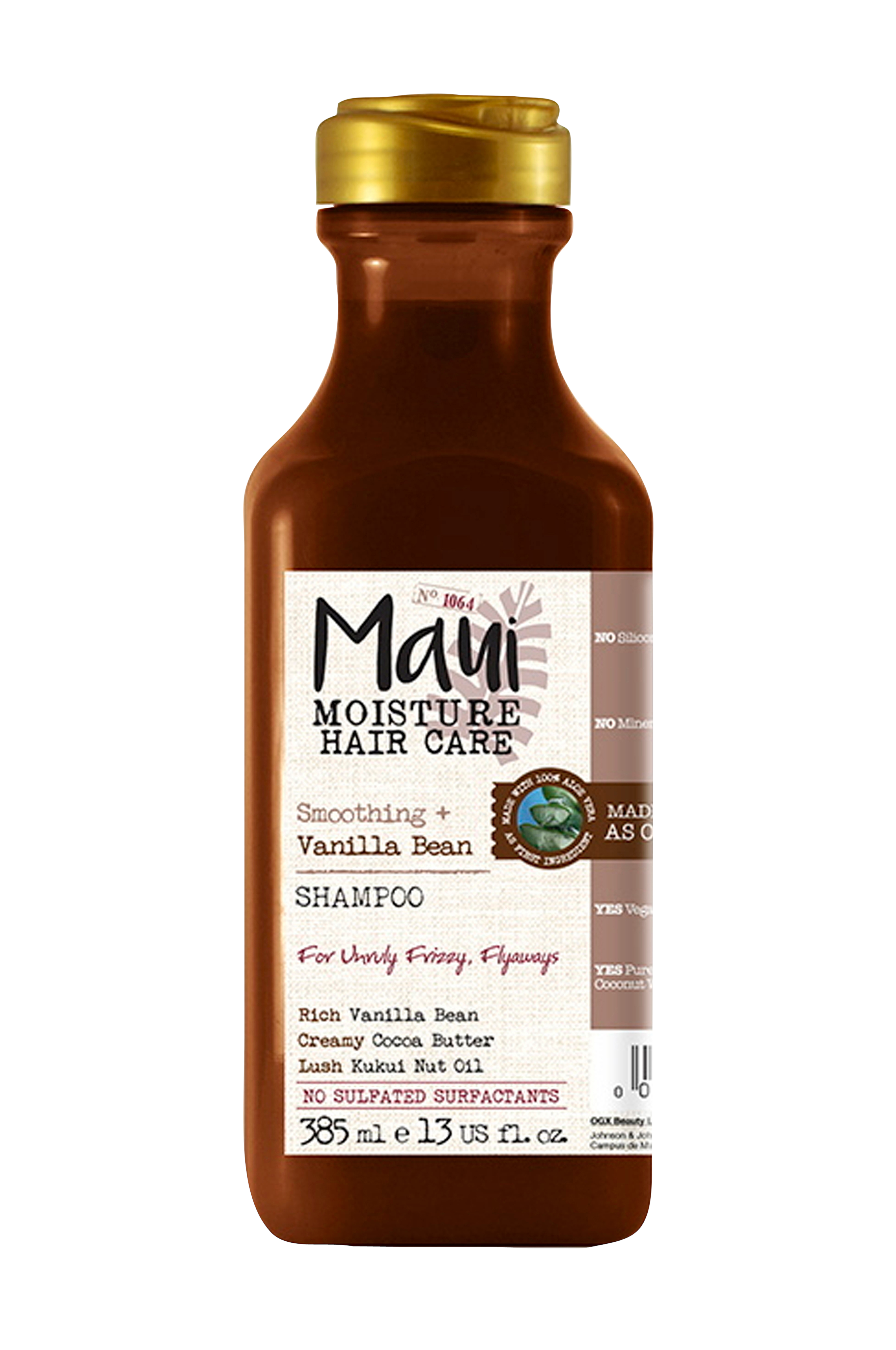 Maui Moisture Vanilla Bean Shampoo är en dröm för dig med torrt, frissigt eller ostyrigt hår. Första ingrediensen i ingredienslistan är inte vatten, som i många liknande produkter, utan återfuktande aloe vera-juice som tillsammans med mustig vaniljböna, krämigt kokossmör och fyllig kukuiolja minimerar friss och reparerar/återuppbygger håret. Resultatet? Ett mjukt svall med fin glans!