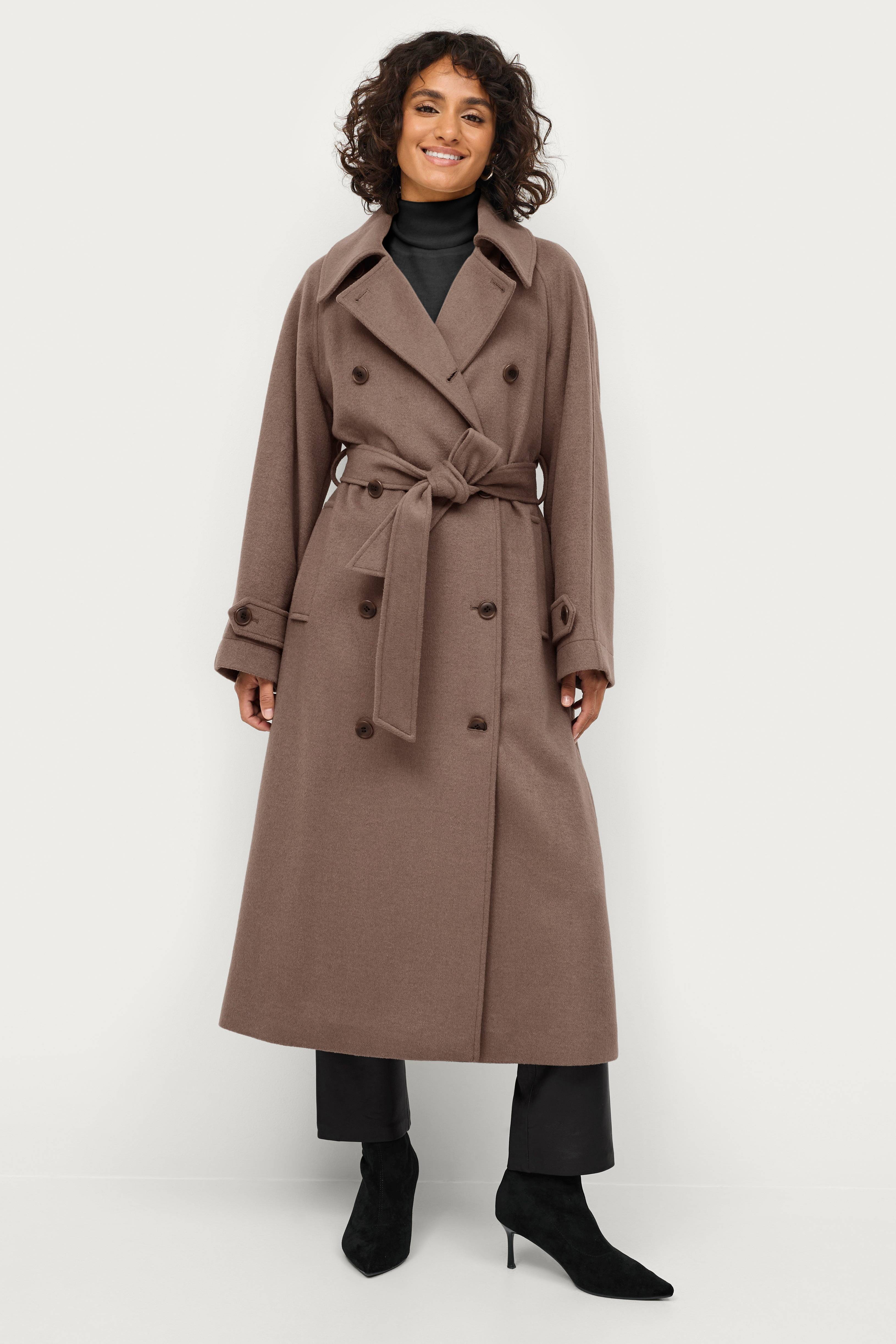 • Kappa i ullmix• Dubbelknäppning• Fickor i sidorna• Löst ok• Knytskärp• Vävt foder• Längd: 121 cm i storlek XS/S