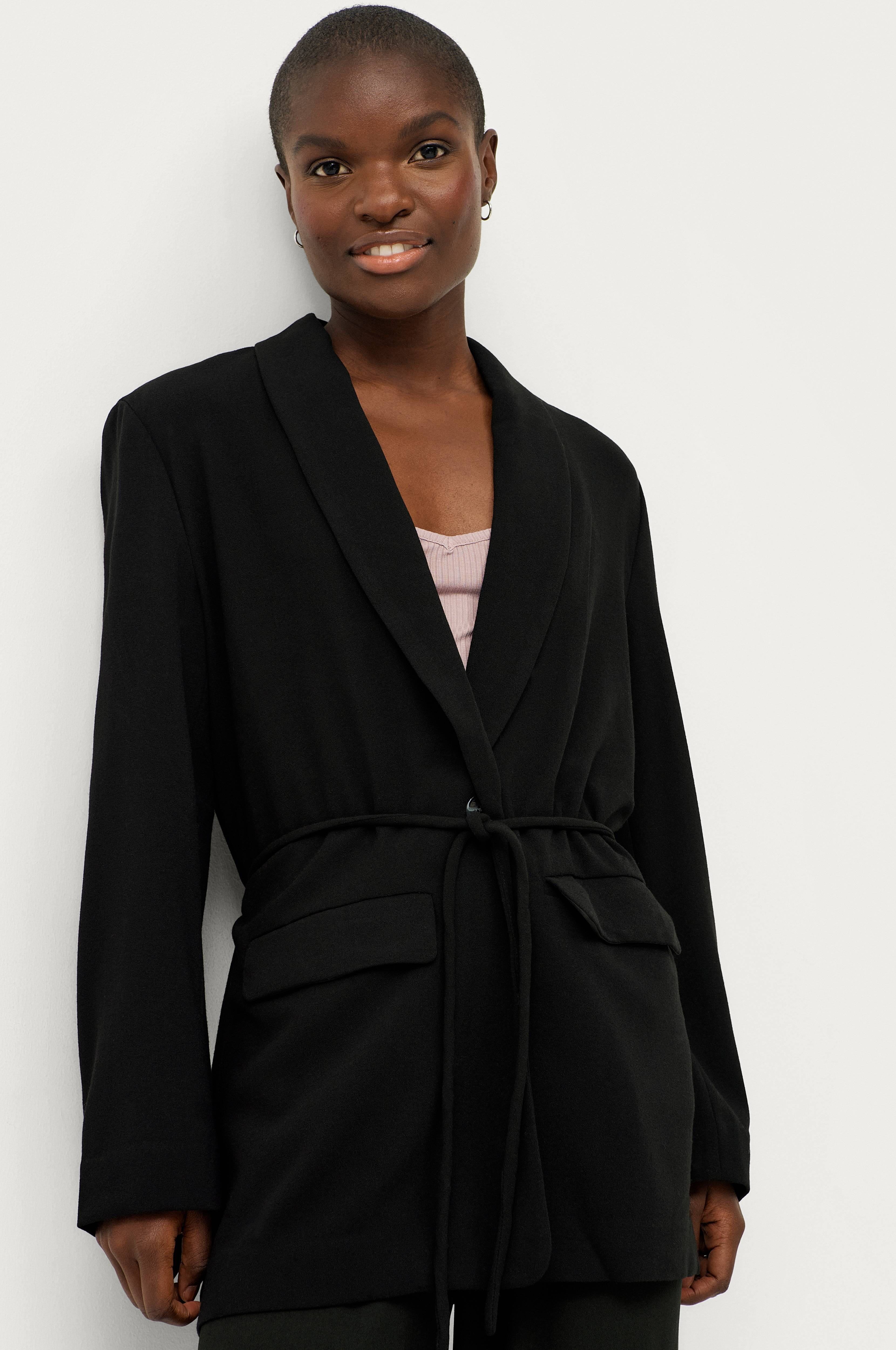 • Smalt knytskärp i midjan• Fickor fram• Kort slits nedtill bak• Ofodrad
