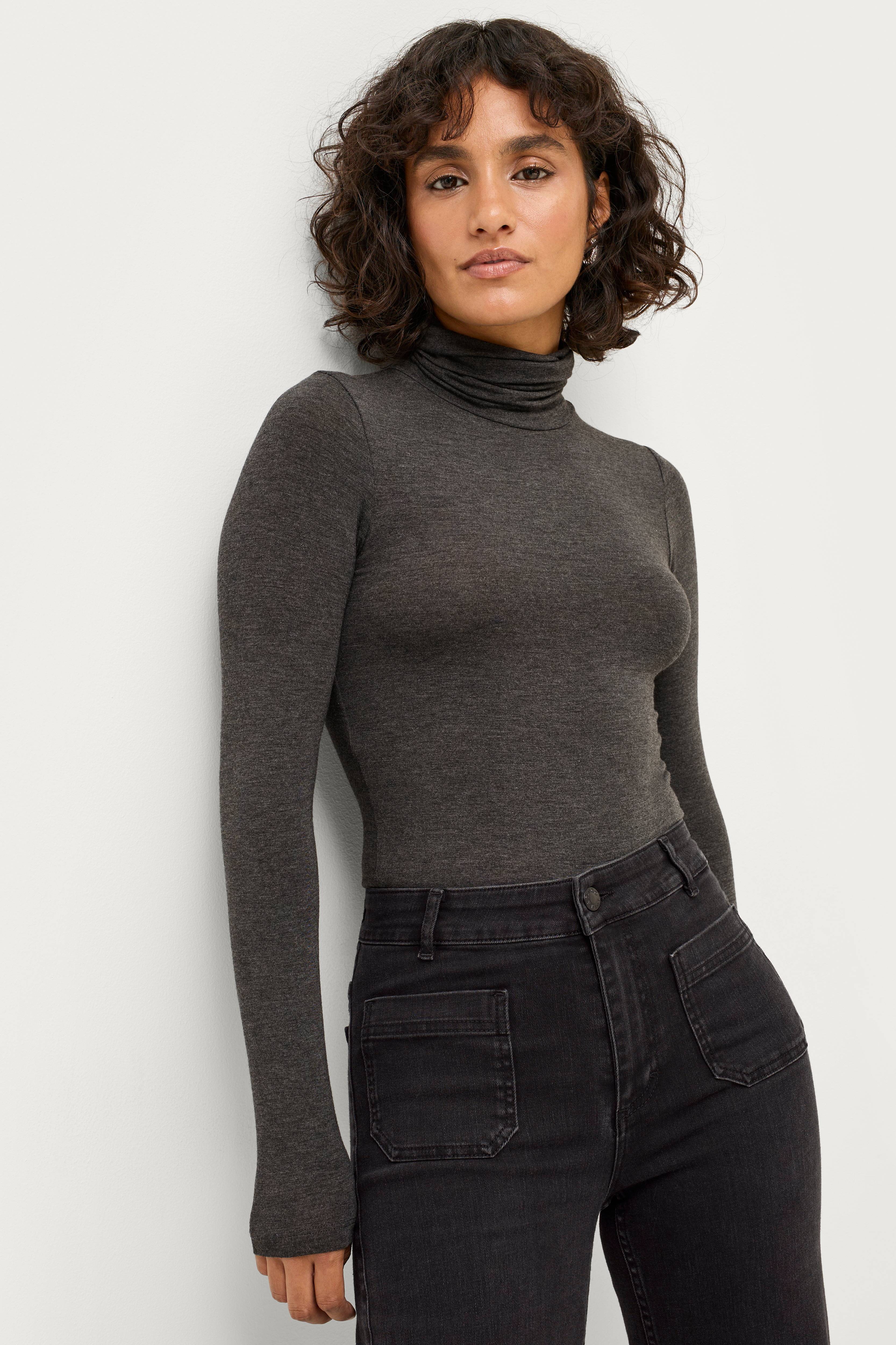 Det är inte lätt att hitta tunn tyg, långa ärmar och riktigt hög hals som med den här poolotröjan