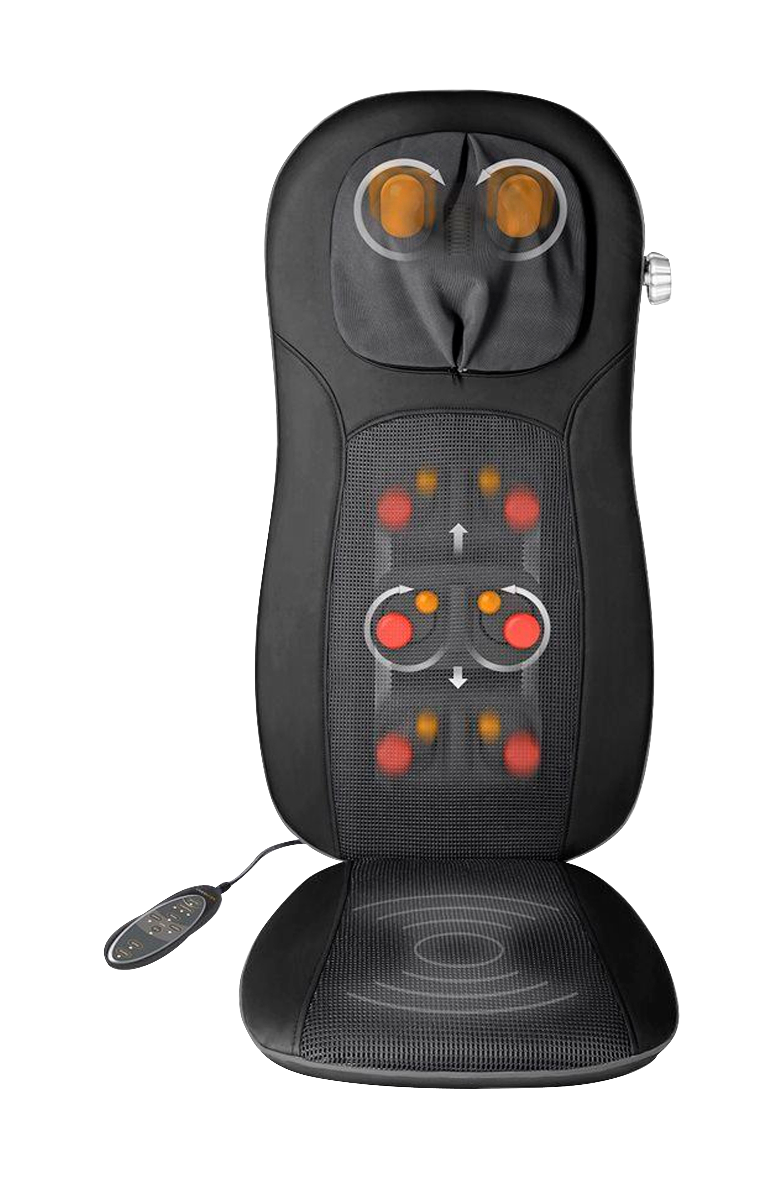 Massagedyna för ryggen med inbyggd nackmassage. Massagedynan har separat vibreringsmassage i sitsen och extra infrarött ljus samt uppvärmningsfunktion.