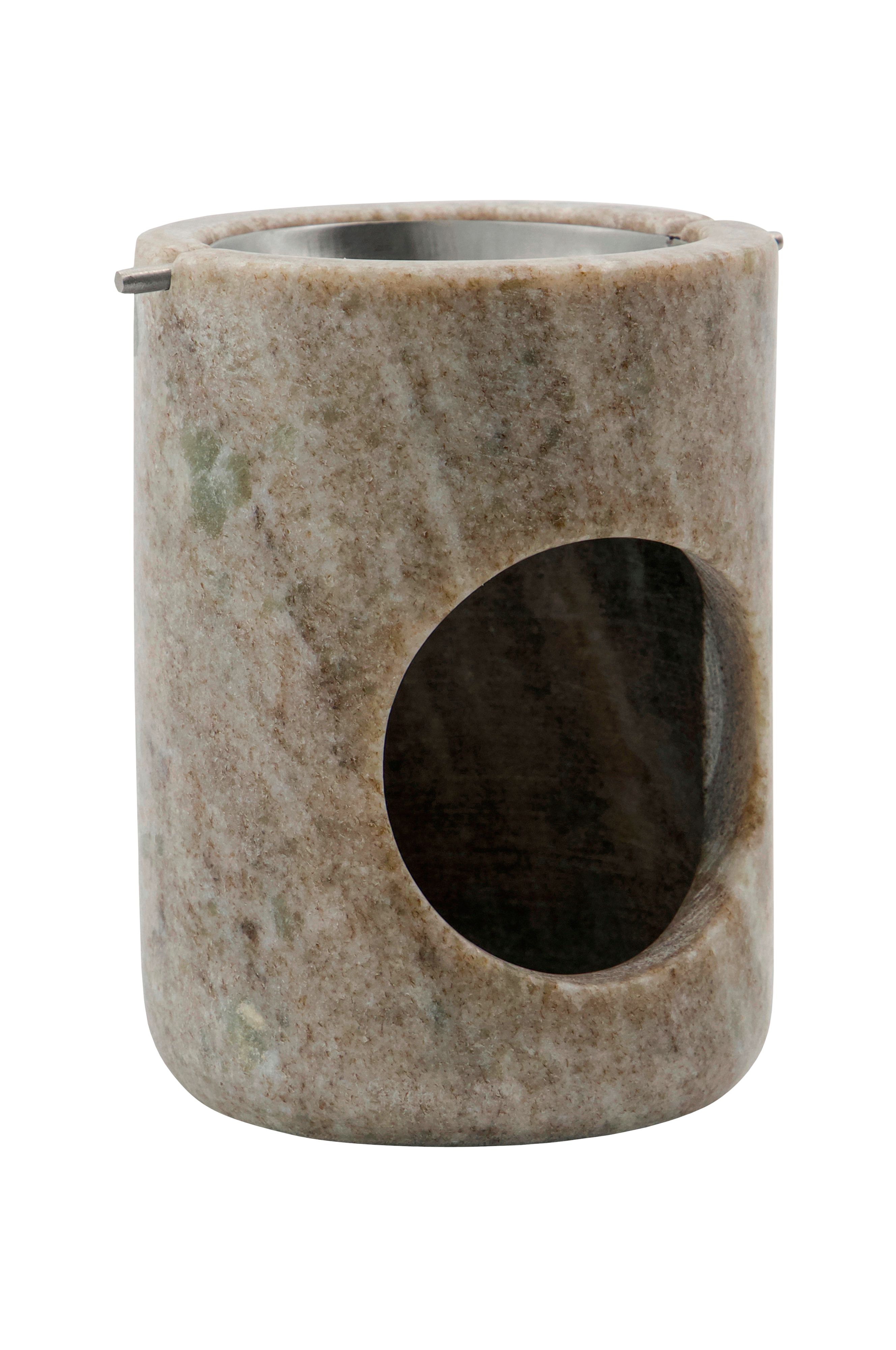Skapa en lugn och väldoftande atmosfär med denna oljebrännare i marmor med kontrasterande metalldetaljer. Använd med eteriska oljor för att försiktigt doftsätta ditt rum.