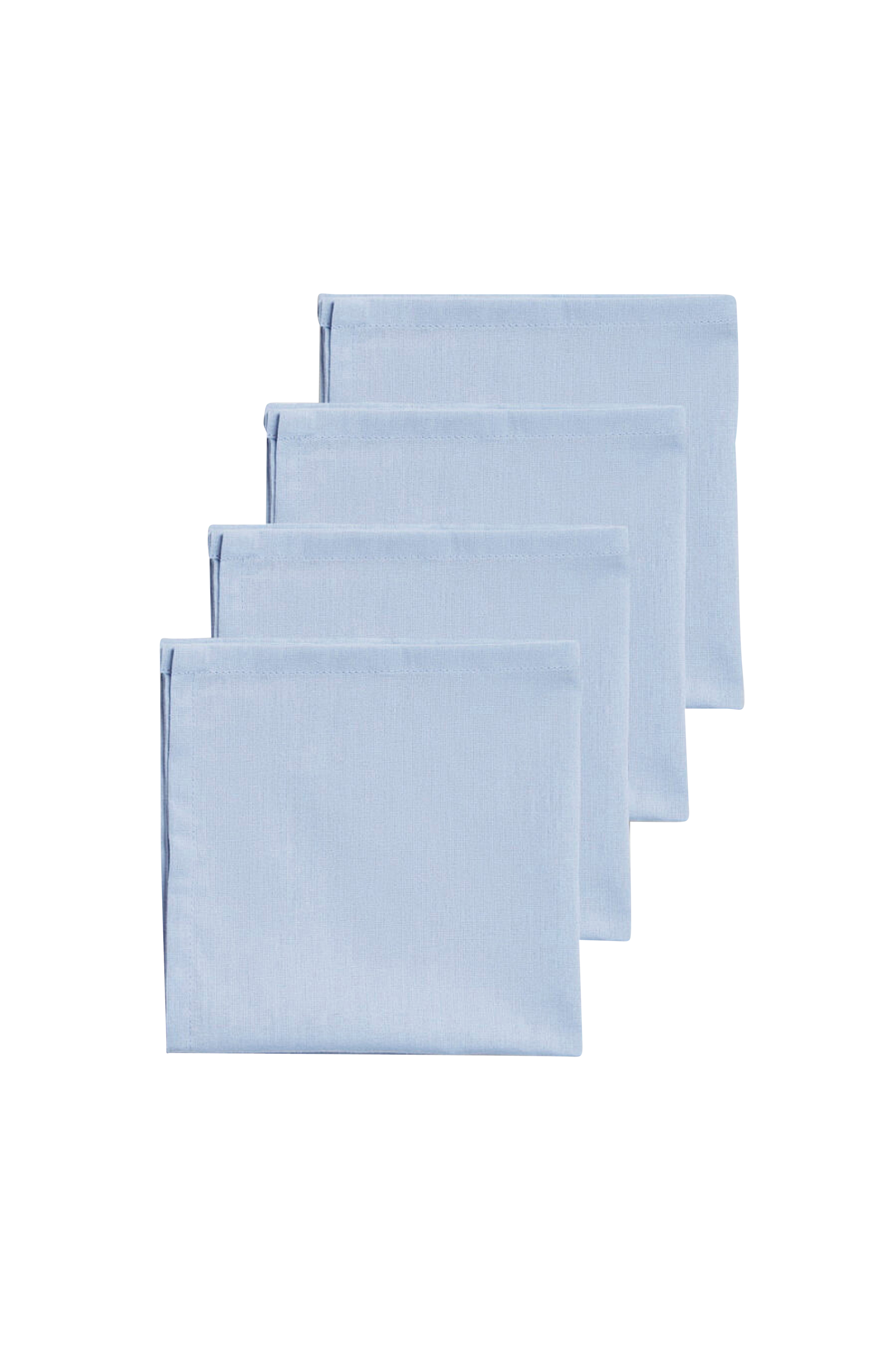 Servetterna från Josefin kommer i en uppsättning om fyra. Färgen på tyget är ljusblå och storleken är 40×40 cm. Servetterna är GOTS-certifierade och tillverkade av 100 % ekologisk bomull.
