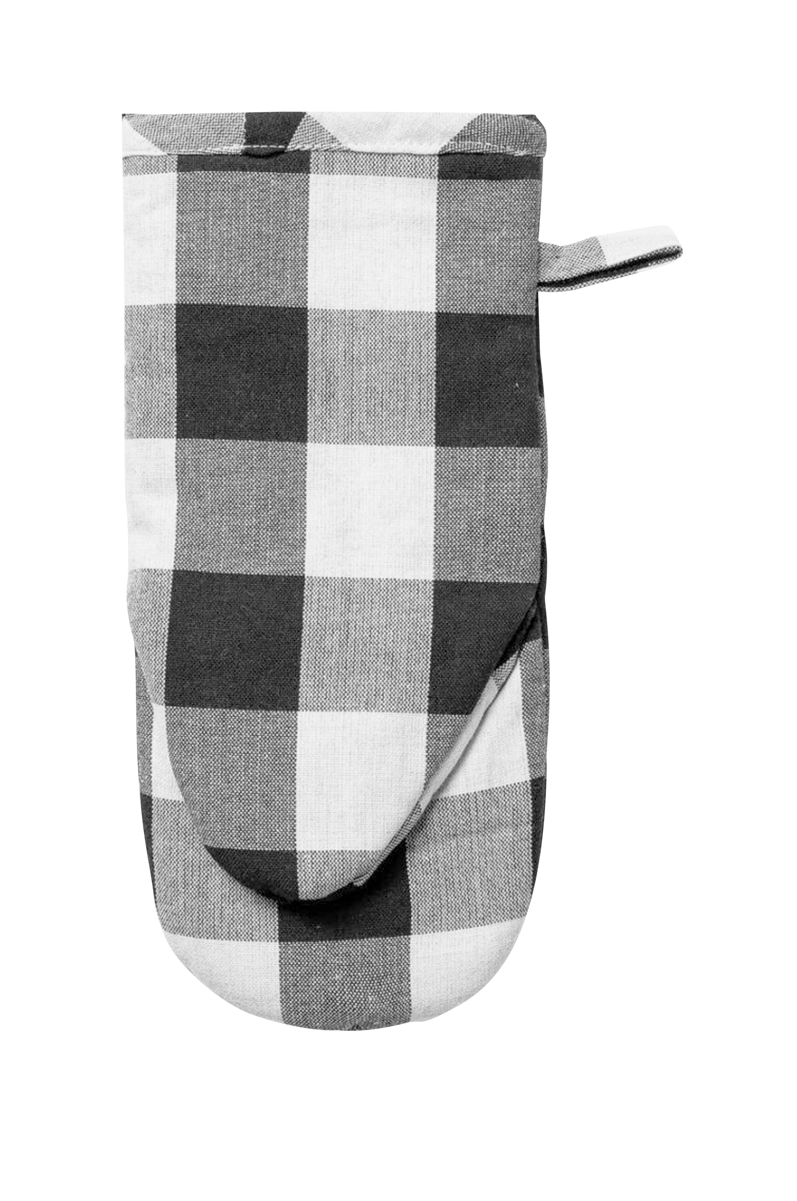 Ugnshandtag i återvunnen bomull. Det mönstrade tyget gingham är tillverkat av återvunnet bomullsgarn som framställts av restprodukter från den indiska textilindustrin.