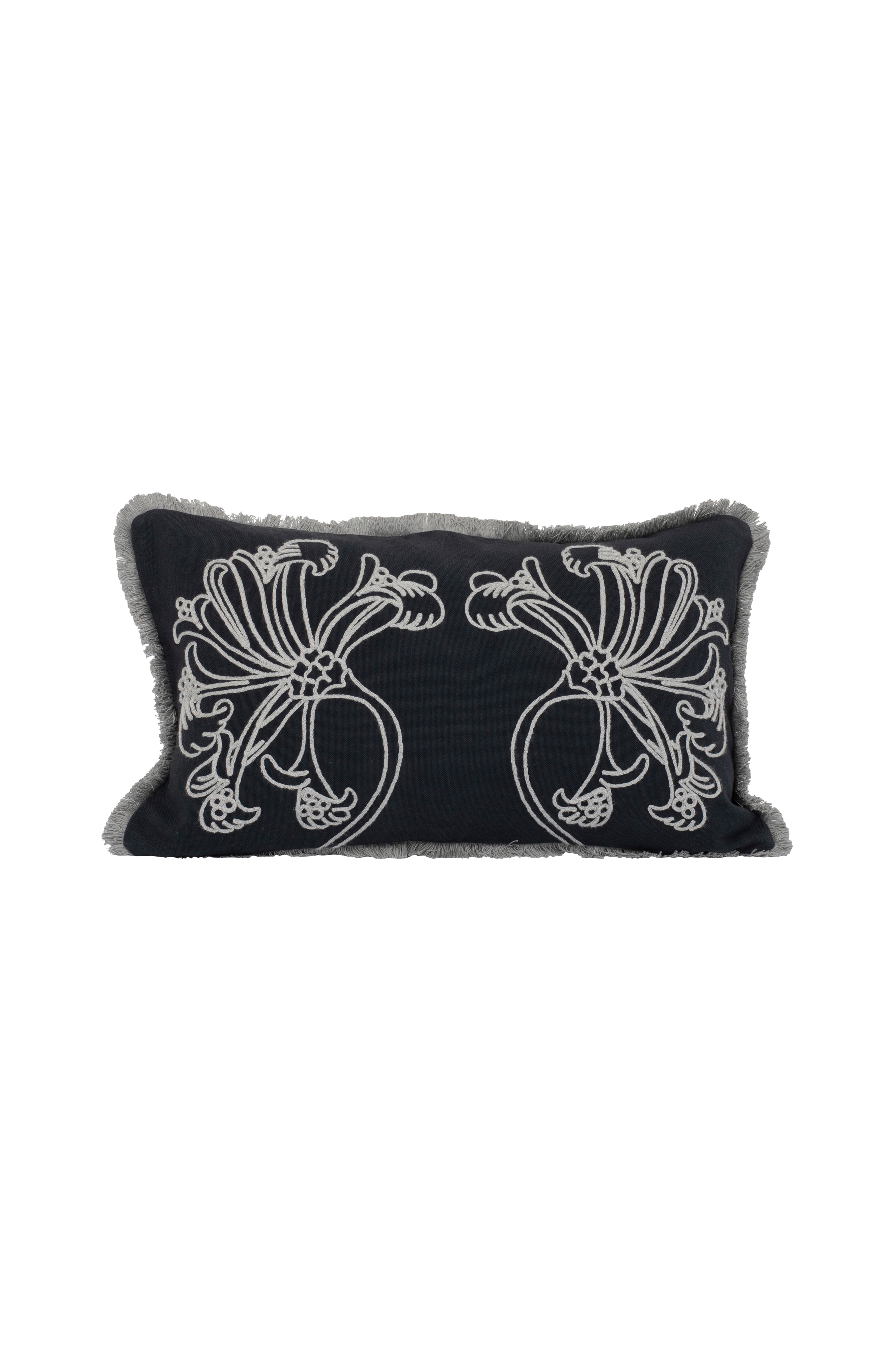 Kuddfodral i bomullscanvas. Broderat med ett blommönster från William Morris. Dekorativ franskant längs med sidorna. Försluts med blixtlås. Tillverkad i Portugal. STANDARD 100 by OEKO-TEX® Tvätta i 30 grader på fintvätt med blixtlåset stängt. Öppna och stäng blixtlåset försiktigt, undvik att dra isär. Undvik tvättmedel med blekmedel. Torktumla ej. Stryk på låg värme. Undvik att stryka eller mangla över blixtlåset.