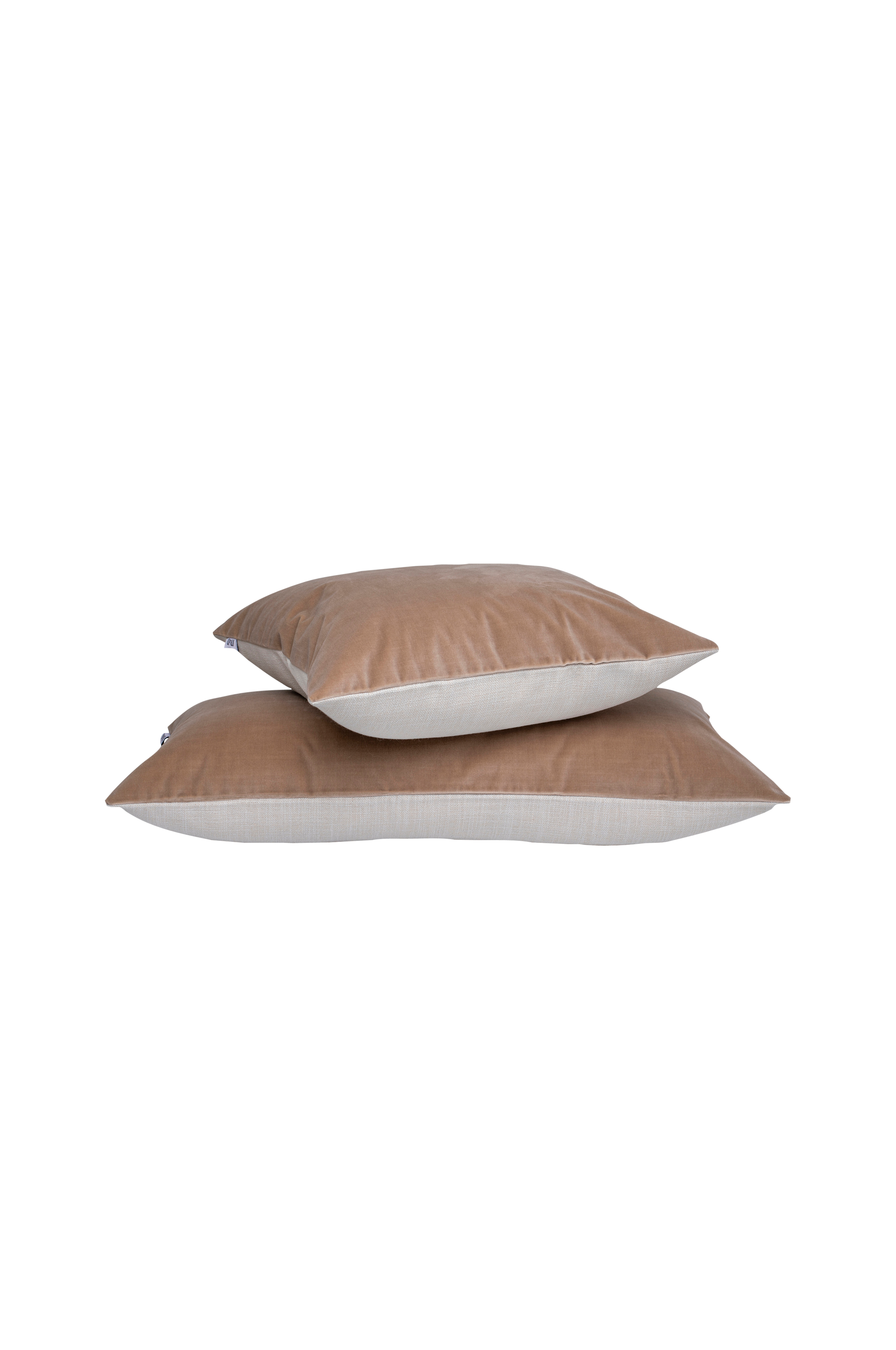 Kuddfodral i stilren design med sammetstyg på framsidan och ivoryfärgat tyg i linnestruktur på baksidan. Försluts med blixtlås. Tillverkade i Portugal. STANDARD 100 by OEKO-TEX®. Skötselråd: Kemtvätt. Stryk på låg värme.