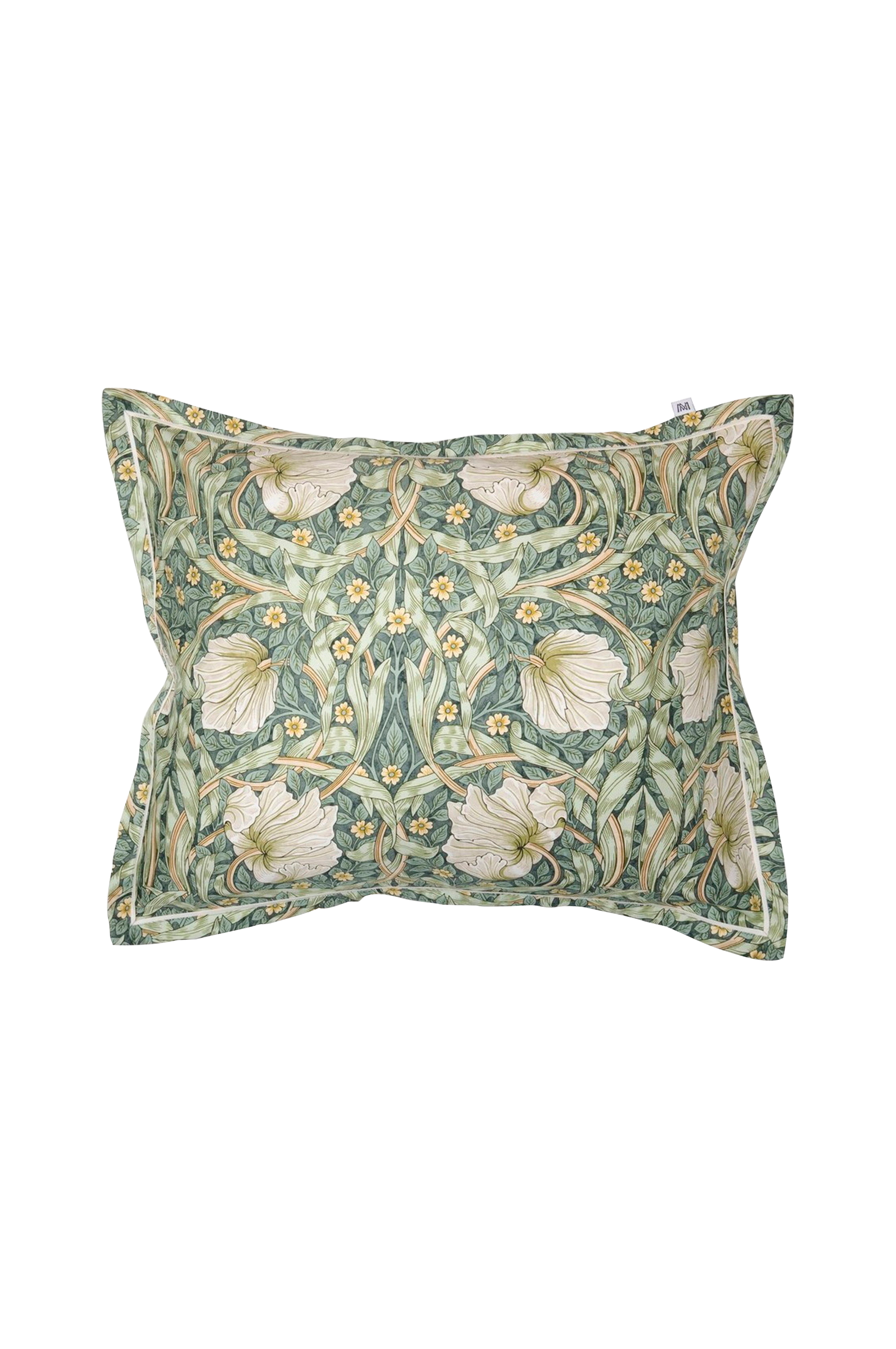 Örngott i len satin tillverkade av finkammad bomull. Trådtäthet 400 tc. Tryckt med ett blommönster från William Morris. Sytt med 2 cm vinge och flatpiping längs vingkanten. Överlappning på baksidan. Tillverkade i Portugal. STANDARD 100 by OEKO-TEX® Skötselråd: Tvätta i 60 grader. Undvik tvättmedel med blekmedel. Hängtorka. Stryk på hög värme för att få fram tygets vackra glans.