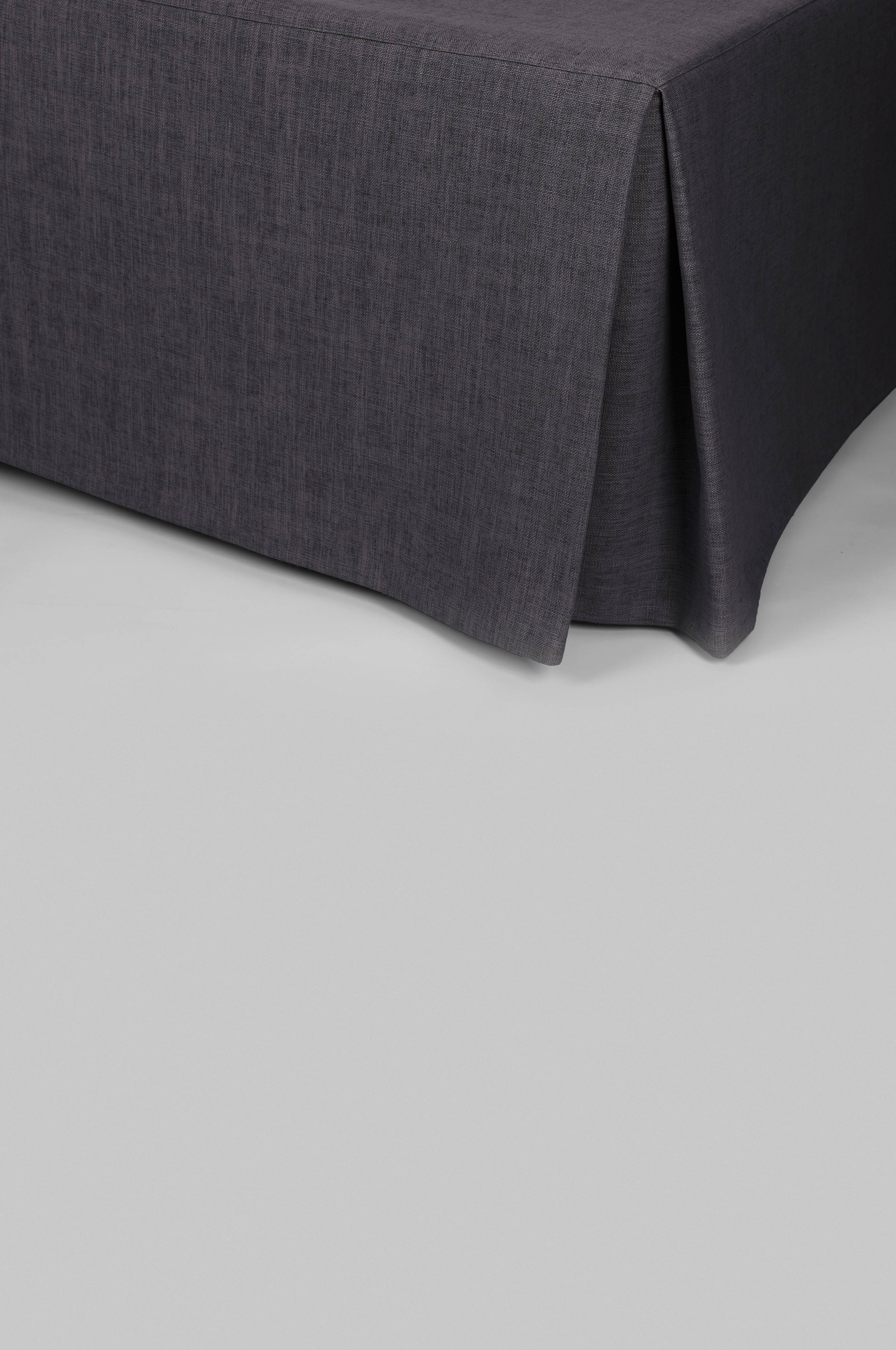 Sängkappa i boxmodell med motveck i hörnen. Tillverkad i ett tyg med linnestruktur (70% polyester, 20% linne, 10% bomull). Finns i alla standardbredder. Höjd 44 cm.