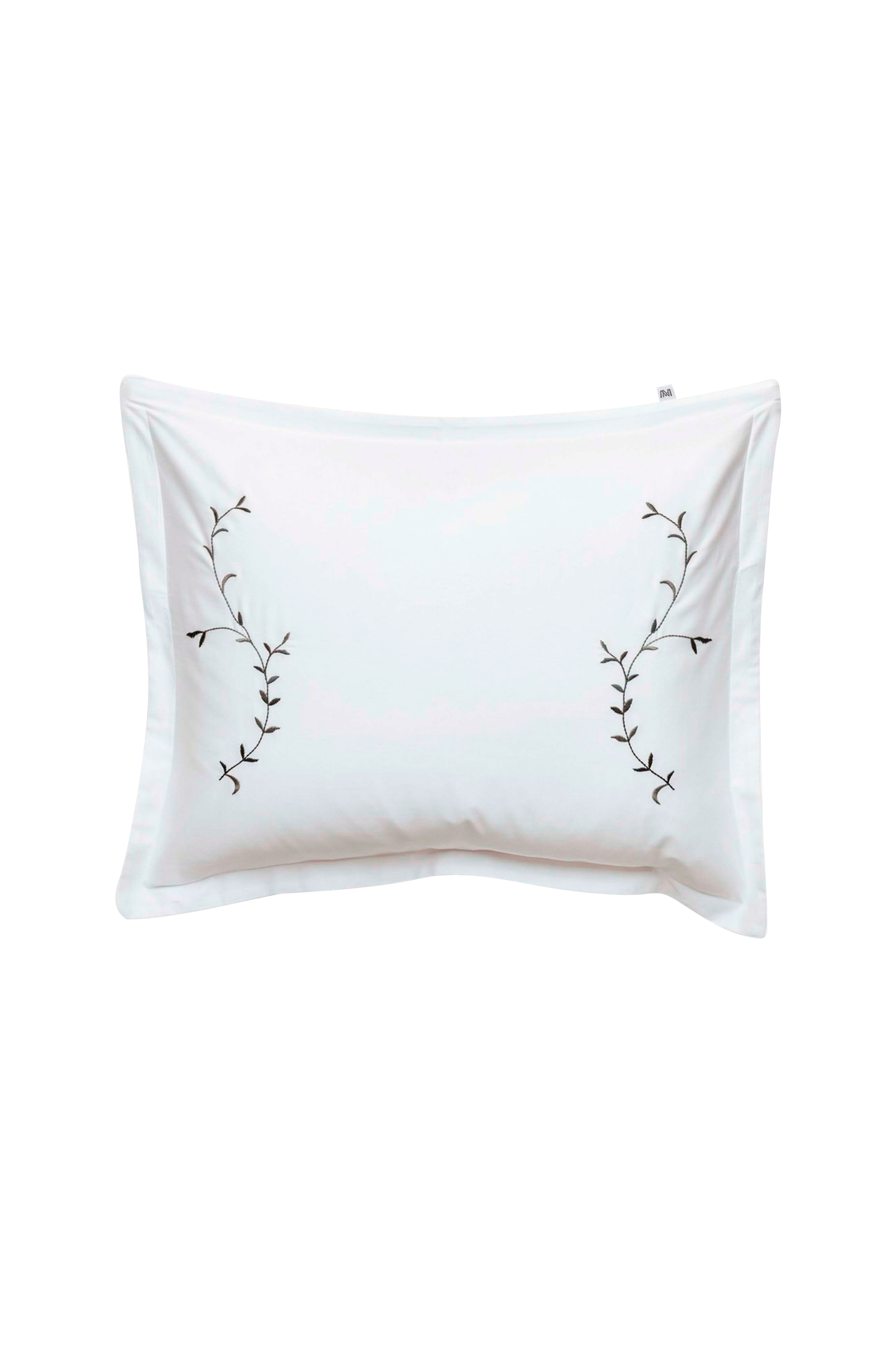Örngott tillverkat av mjuk och len, finkammad bomullssatin. Trådantal: 340 tc. Designad med dekorativt broderi av olivgrenar i olika gröna nyanser och en 3 cm bred vinge. Stängning med överlappning. Tillverkad i Portugal. Standard 100 av oeko-tex®.