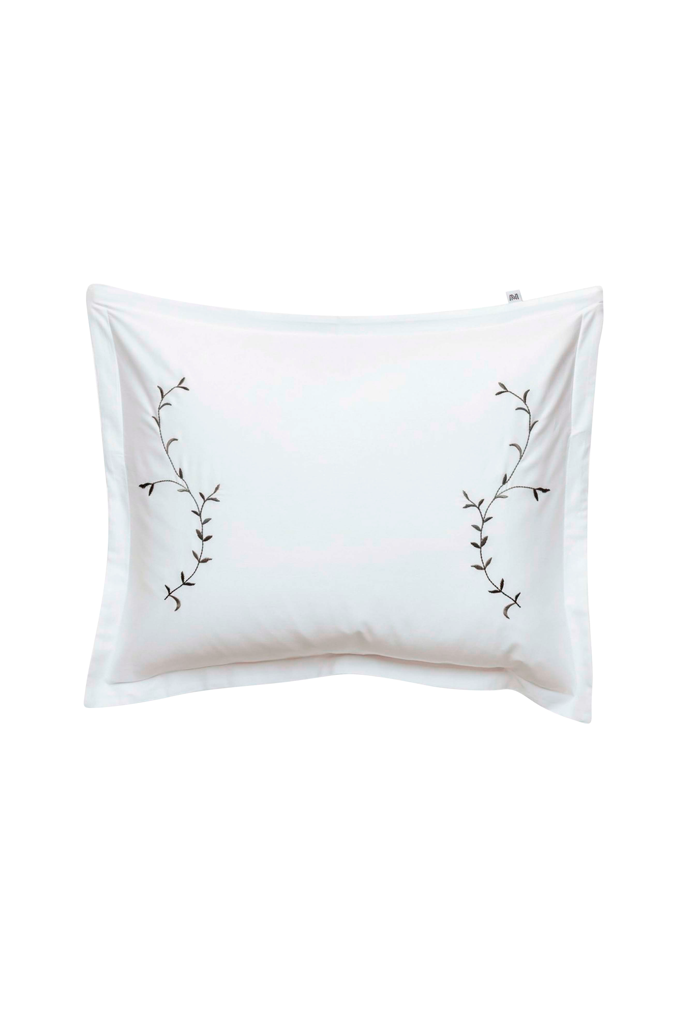 Örngott tillverkat av mjuk och len, finkammad bomullssatin. Trådantal: 340 tc. Designad med dekorativt broderi av olivgrenar i olika gröna nyanser och en 3 cm bred vinge. Stängning med överlappning. Tillverkad i Portugal. Standard 100 av oeko-tex®.