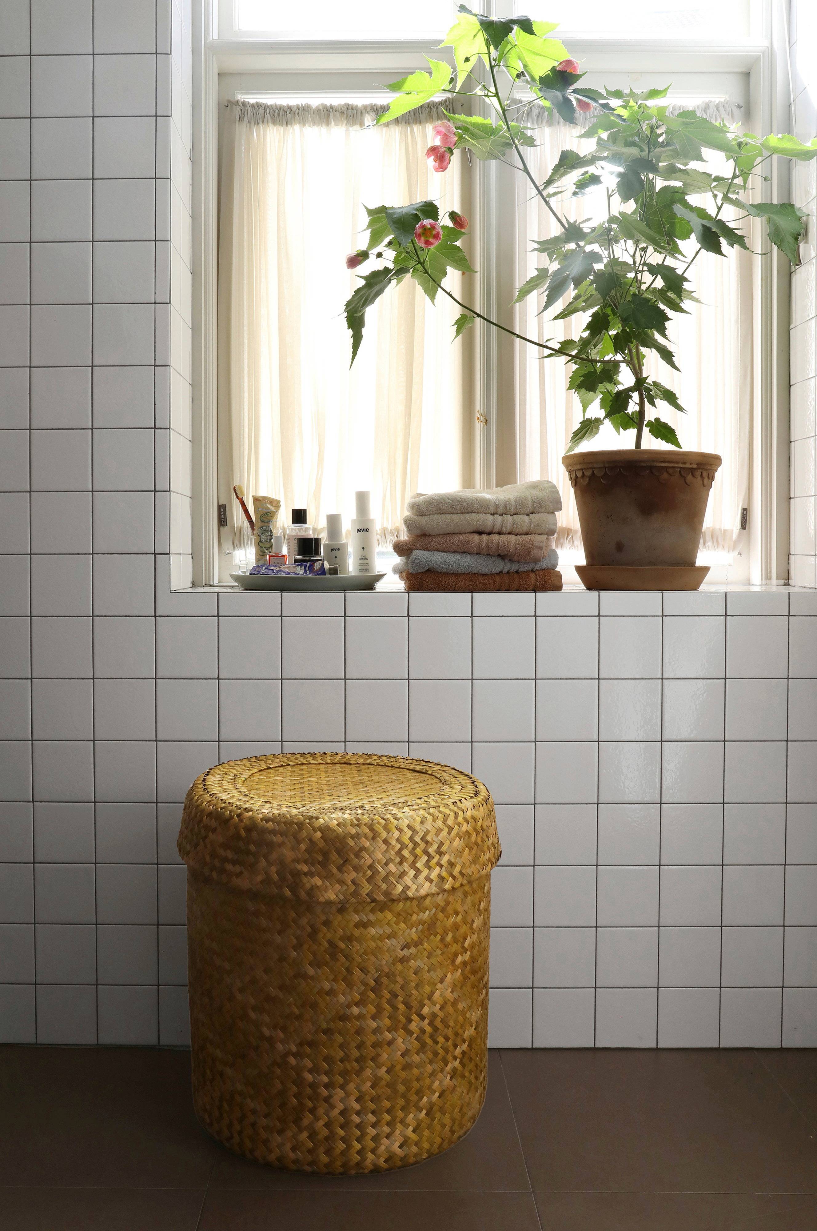 Rutig korg med platt lock som är handvävd av sjögräs av ett kollektiv i södra Thailand. Korgen finns i två storlekar, den här storleken är lämplig som tvättkorg eller för att förvara leksaker, återvunna petflaskor eller tidningar i. Korgen är vävd i två lager för att vara extra robust. För oss på mimou är det traditionella hantverket viktigt och vi vill behålla produktionen som den ursprungligen var uppbyggd. Därför produceras allt vårt hantverk i byarna så att byborna kan arbeta efter sina egna arbetstider.