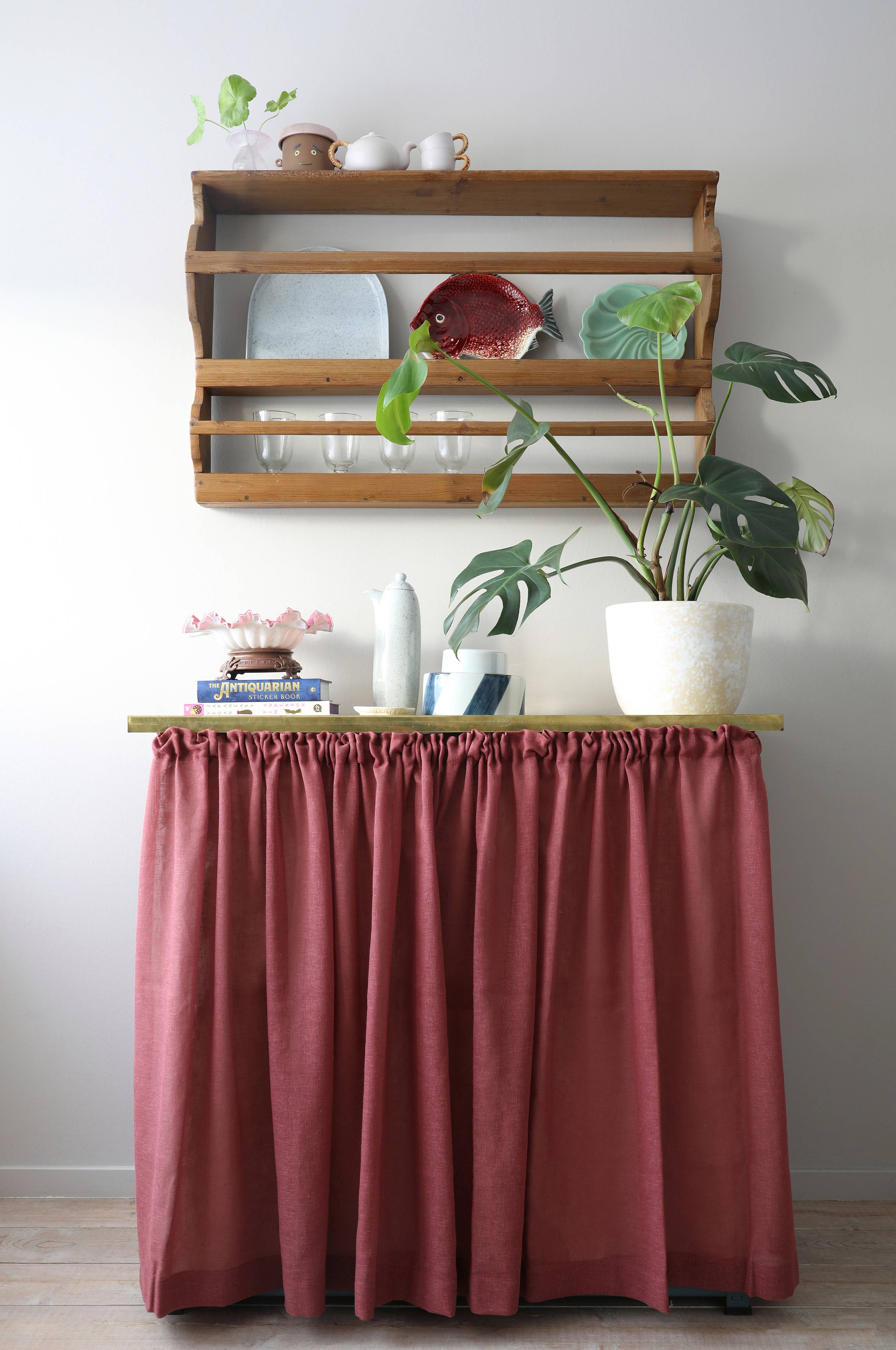 Extra bred cafégardin i skir halvlinne med vacker struktur. Gardinen är sydd med kanal som passar en tunn gardinstång eller gardinspiral och har ett litet rynkhuvud upptill. Bistrogardinen har ett skräddat uttryck med klassiska osynliga sidofållar och dubbelt upplägg nedtill så att gardinen får rätt tyngd. Fållen nedtill har även en öppning i varje sida så att gardinen även kan användas som en spänngardin i fönster, på dörr eller skåp. Tyget är Oeko-Tex® Standard 100 certifierad, vilket är en garanti för att det inte innehåller hälsovådliga ämnen. 30 grader skonsam maskintvätt eller kemtvätt. Säljs styckvis.