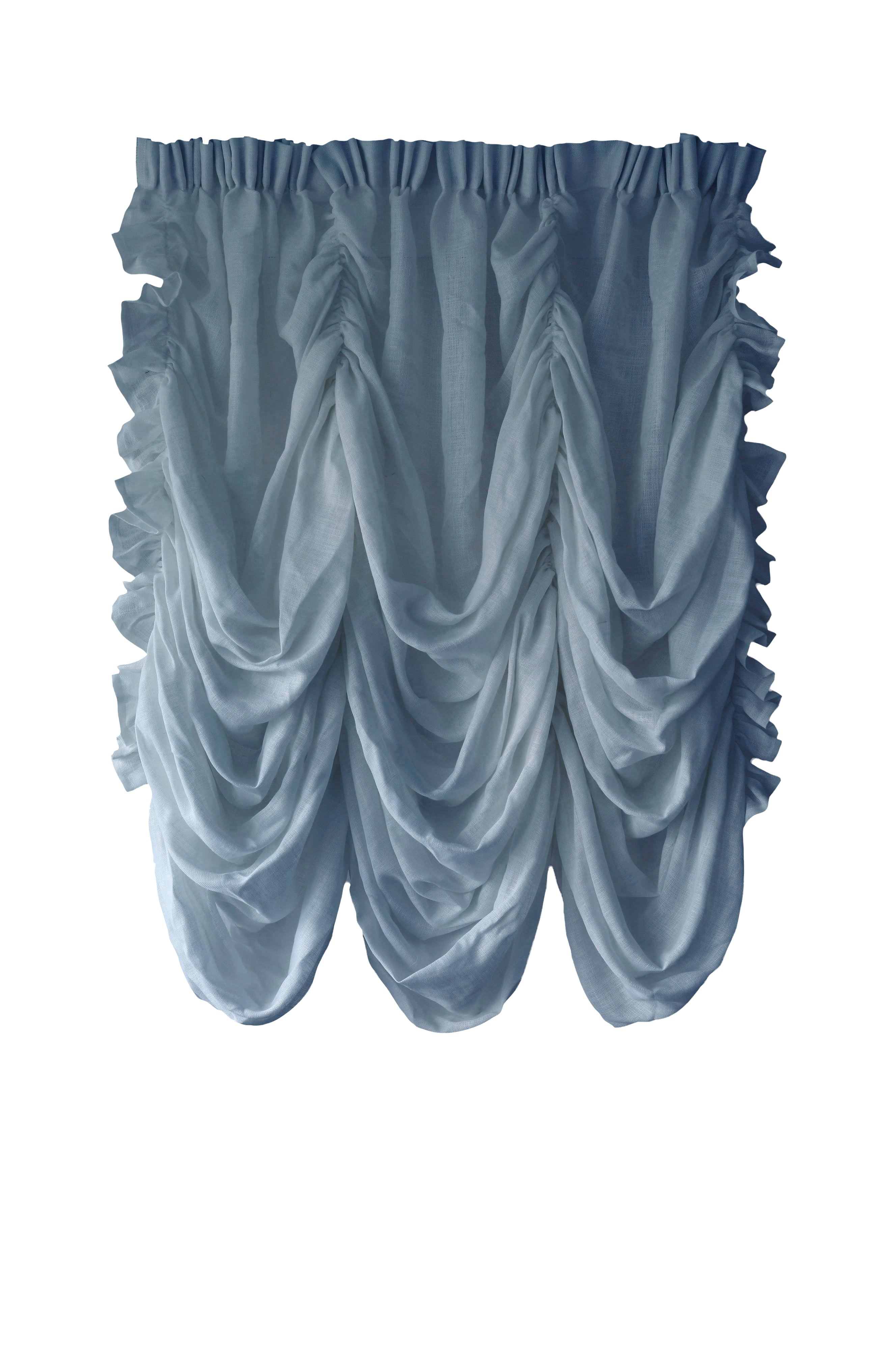 Draperad linnegardin vävd med tjocka trådar som ger en vacker struktur och ett vackert fall. Gardinen är semitransparent, vilket innebär att den filtrerar ljuset vackert och man kan se konturerna av det som finns utanför, men den täcker bra för insyn utifrån. Volangen är sydd med fasta draperier, så när den ska hängas upp i fönstret behöver man bara sätta i fingerkrokarna i gardintejpen. Gardinen passar fönster som är 100-125 cm breda. 18 st 4-fingerkrokar ingår. Sätt i alla fickor för en smal bredd och hoppa över 1 ficka när du vill ha en bredare bredd. Material: 40% linne 60% polyester Oeko-Tex® Standard 100-certifierad, vilket är en garanti för att den inte innehåller hälsofarliga ämnen. Tvätt: 30 grader skonsam maskintvätt eller kemtvätt. Bredd: 100-125 cm Höjd: 140 cm Säljs styckvis.