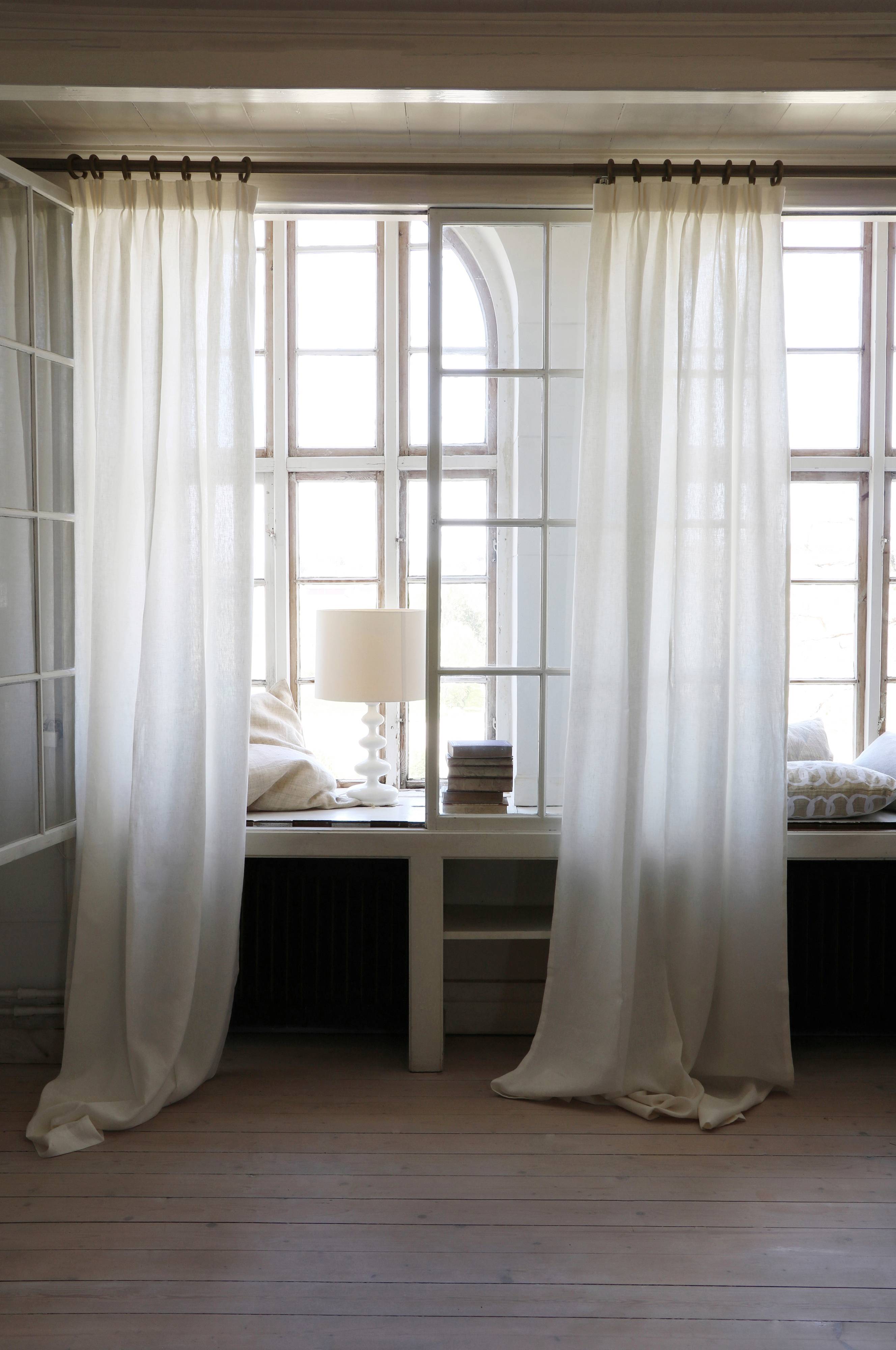 Gardin i 100% lin som är 130 cm bred. Linnegardinen är chambrayvävd med vit varp och färgad veft vilket gör färgerna mjuka och behagliga samt ger gardinen ett krispigt utseende. Linet är av otroligt hög kvalité och kan strykas och manglas för att få en slät nästan glansig yta, eller så hänger man den som den är och låter den bli naturligt krinklad av varje gång man drar i den. Oavsett så har denna gardin ett otroligt vacker fall och den blir bara finare med åren. Gardinen har ett skräddat uttryck med klassiska osynliga sidofållar och dubbelt upplägg nedtill så att gardinen får rätt tyngd. 4-fingerkrok ingår till varje veckbandslängd. Fingerkroks-upphäng passar alla skenor med glid och vanlig gardinstång med gardinring och ögla på. 4-fingerkrok används för att skapa vackra fingerveck i gardinen som ger ett välskräddat intryck och låter gardinen komma till sin rätt. Tyget är Oeko-Tex® Standard 100 certifierad, vilket är en garanti för att det inte innehåller hälsovådliga ämnen. 30 grader skonsam maskintvätt eller kemtvätt. Bredd 130 cm Höjd 250 cm och 290 cm. Säljs styckvis.
