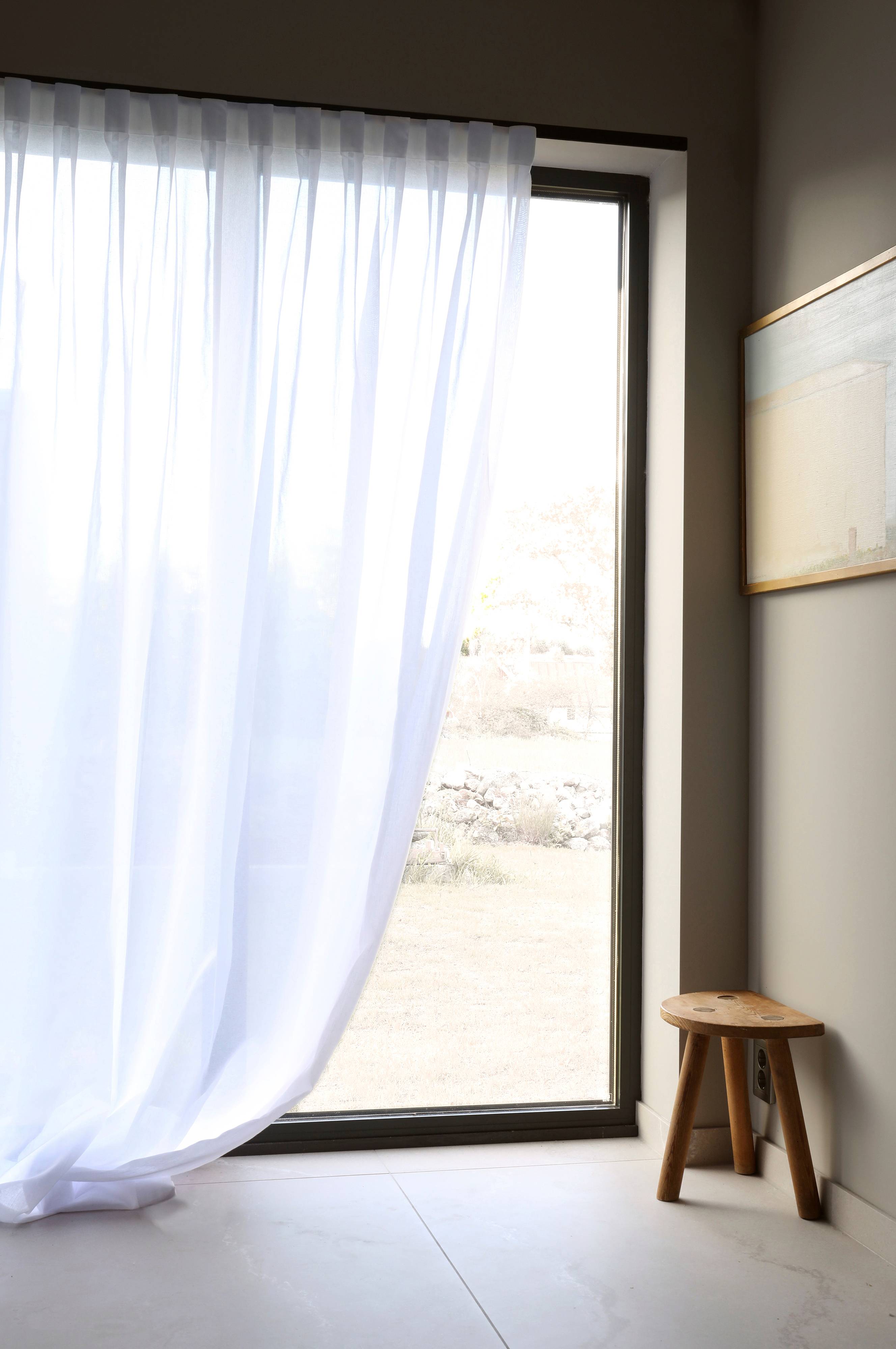 Veckbandslängd som är 140 cm bred. Gardinen faller vackert och har en matt yta som låter ljuset silas in. Gardinen har dubbelt upplägg nedtill så att gardinen får rätt tyngd. 4-fingerkrok ingår till varje veckbandslängd. Fingerkroks-upphäng passar alla skenor med glid och vanlig gardinstång med gardinring och ögla på. 4-fingerkrok används för att skapa vackra fingerveck i gardinen som ger ett välskräddat intryck och låter gardinen komma till sin rätt.