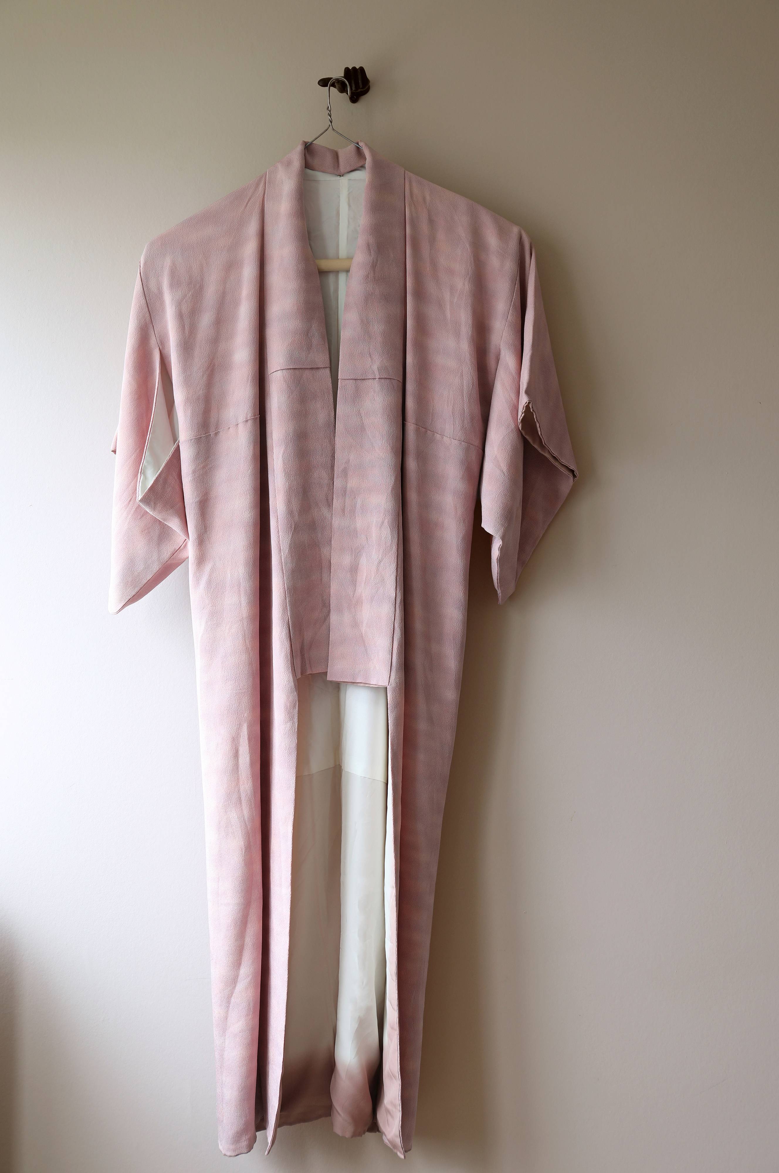 Vacker vintagekimono. Detta är ett vintageplagg som är handsytt och tidigare använt, därför kan mindre fläckar förekomma. Kimonon är utvald av ägarna till Mimou som rekvisita till deras fotograferingar. Varje kimono är unik och det finns endast en av varje modell. Denna kimono är vacker att hänga som dekoration eller att använda som klädesplagg. Fin som morgonrock eller styla den tillsammans med en t-shirt och ett par jeans. Den säljs utan skärp och de flesta kimonos är väldigt långa så vill man använda dem som klädesplagg så kan man lägga upp dem nedtill för att få rätt längd. Kuriosa är att kimono betyder "något man har på sig". Kimonon kommer packad i en fin väska. Längd ca 150 cm. Tvättråd: Kemtvätt
