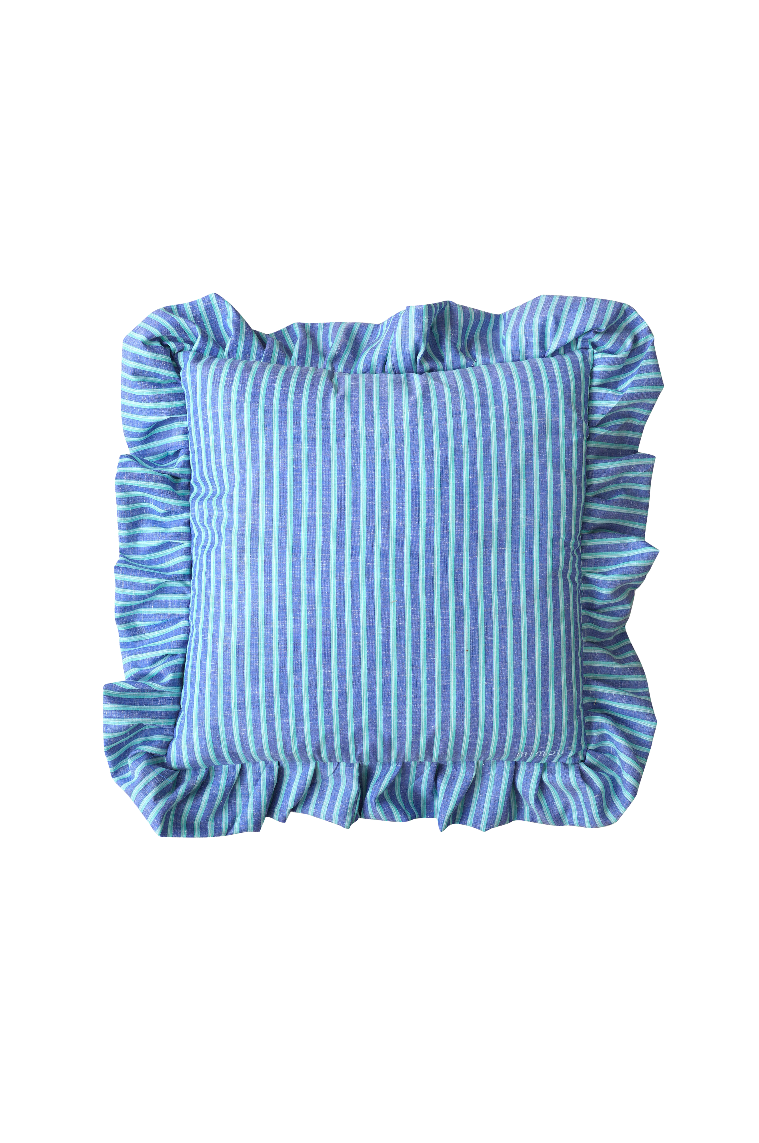 Handgjord kudde med volang tillverkad av dubbelt tyg. Den dekorativa kudden är sydd av överblivet tyg från skjortproduktionen. Att återanvända material istället för att nyproducera är ett mer hållbart val och ett steg i att minska textilavfallet. Säljs inklusive en innerkudde tillverkad av ankfjäder som är Oeko-Tex®-certifierad. Storlek: 47X47 cm + 10 cm volang.