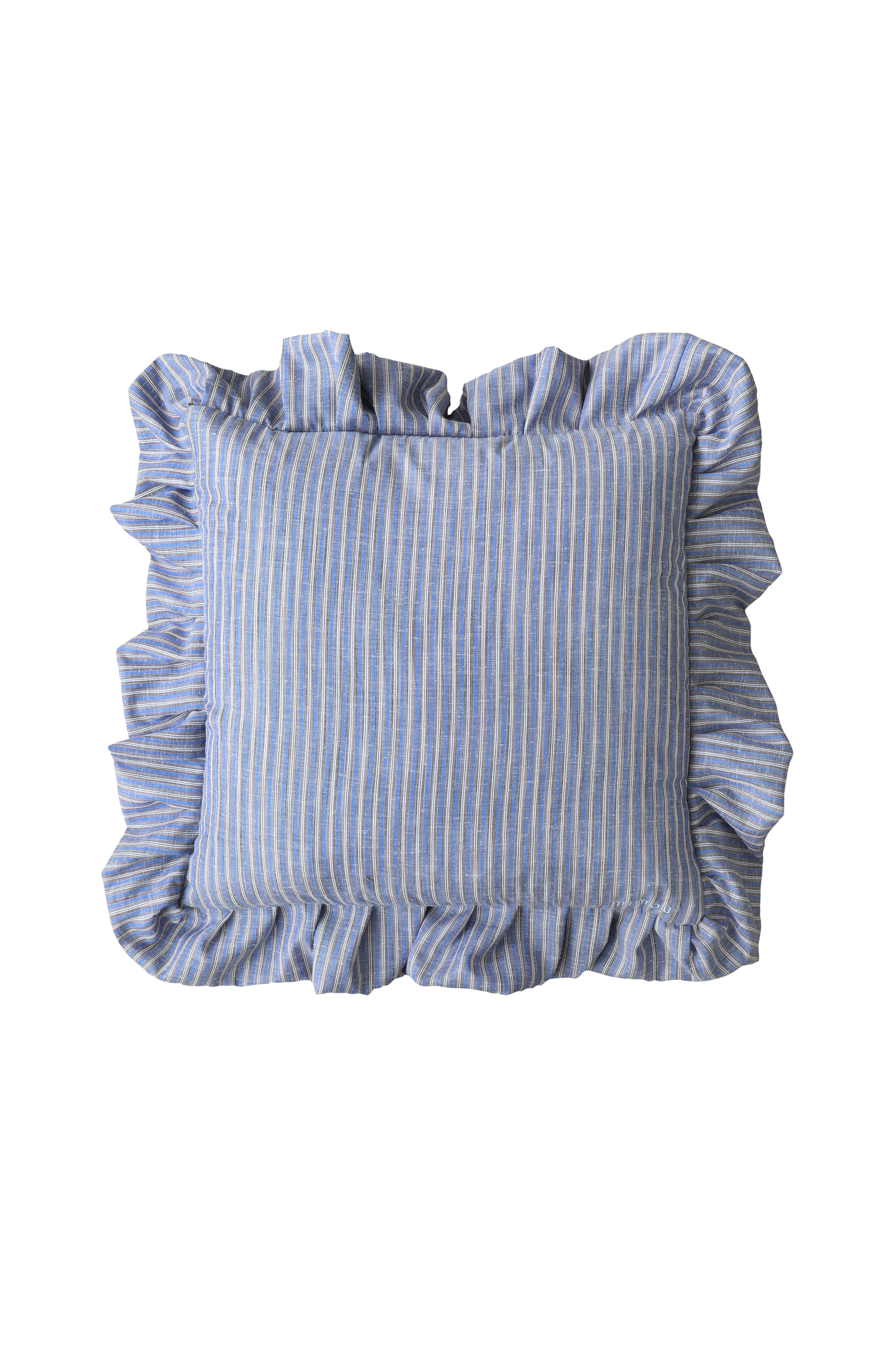 Handgjord kudde med volang tillverkad av dubbelt tyg. Den dekorativa kudden är sydd av överblivet tyg från skjortproduktionen. Att återanvända material istället för att nyproducera är ett mer hållbart val och ett steg i att minska textilavfallet. Säljs inklusive en innerkudde tillverkad av ankfjäder som är Oeko-Tex®-certifierad. Storlek: 47X47 cm + 10 cm volang.