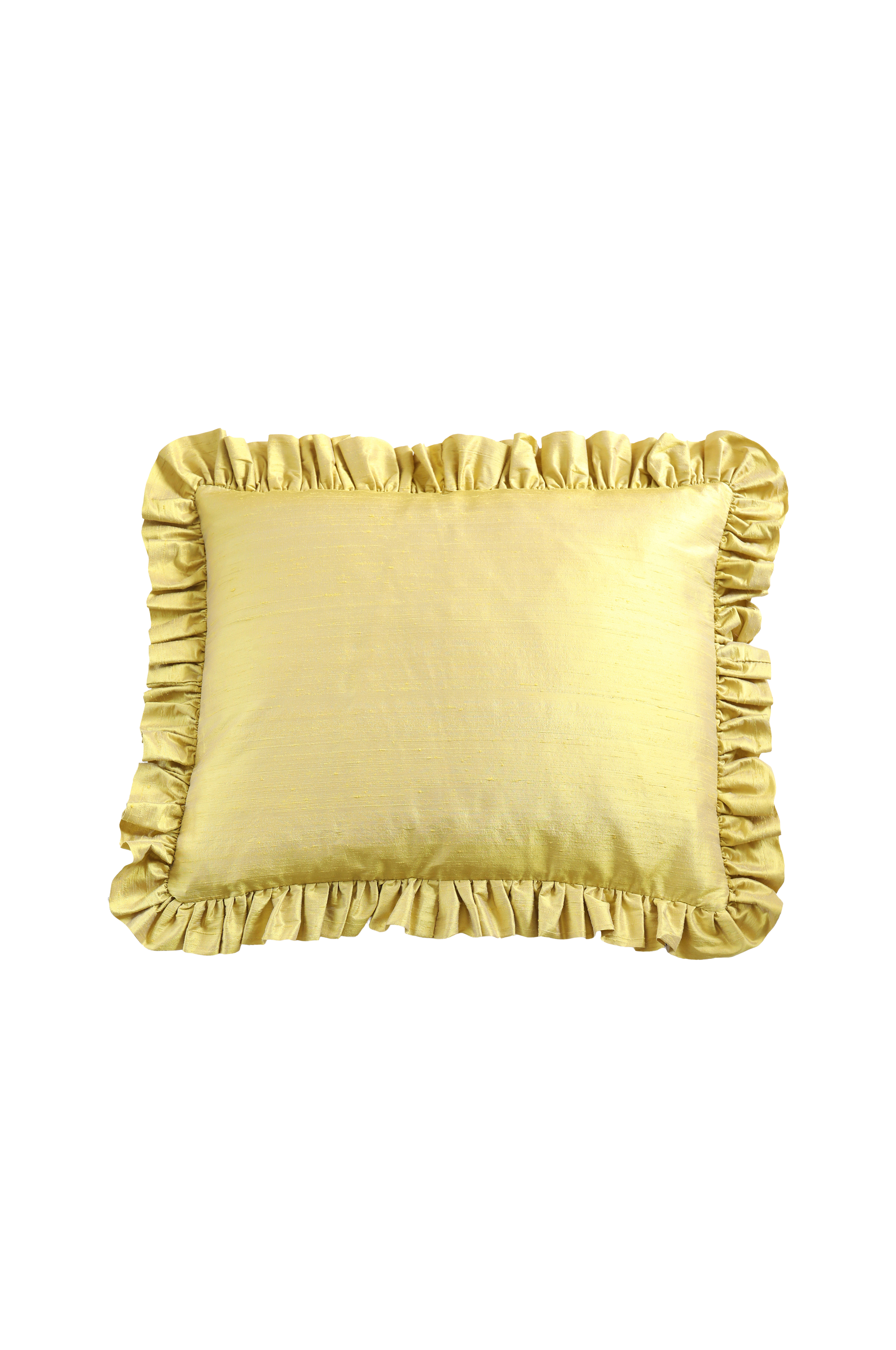 Handgjord kudde med volang av dubbelt tyg. Den stora prydnadskudden har en sida av kraftigt portugisiskt lin och en sida av återbrukad, handvävd siden. Att återanvända material i stället för att nyproducera är ett hållbarare val och ett steg i att minska textilavfall. Säljs inklusive innerkudde av andfjäder. Storlek: 50X60 cm + 7 cm volang