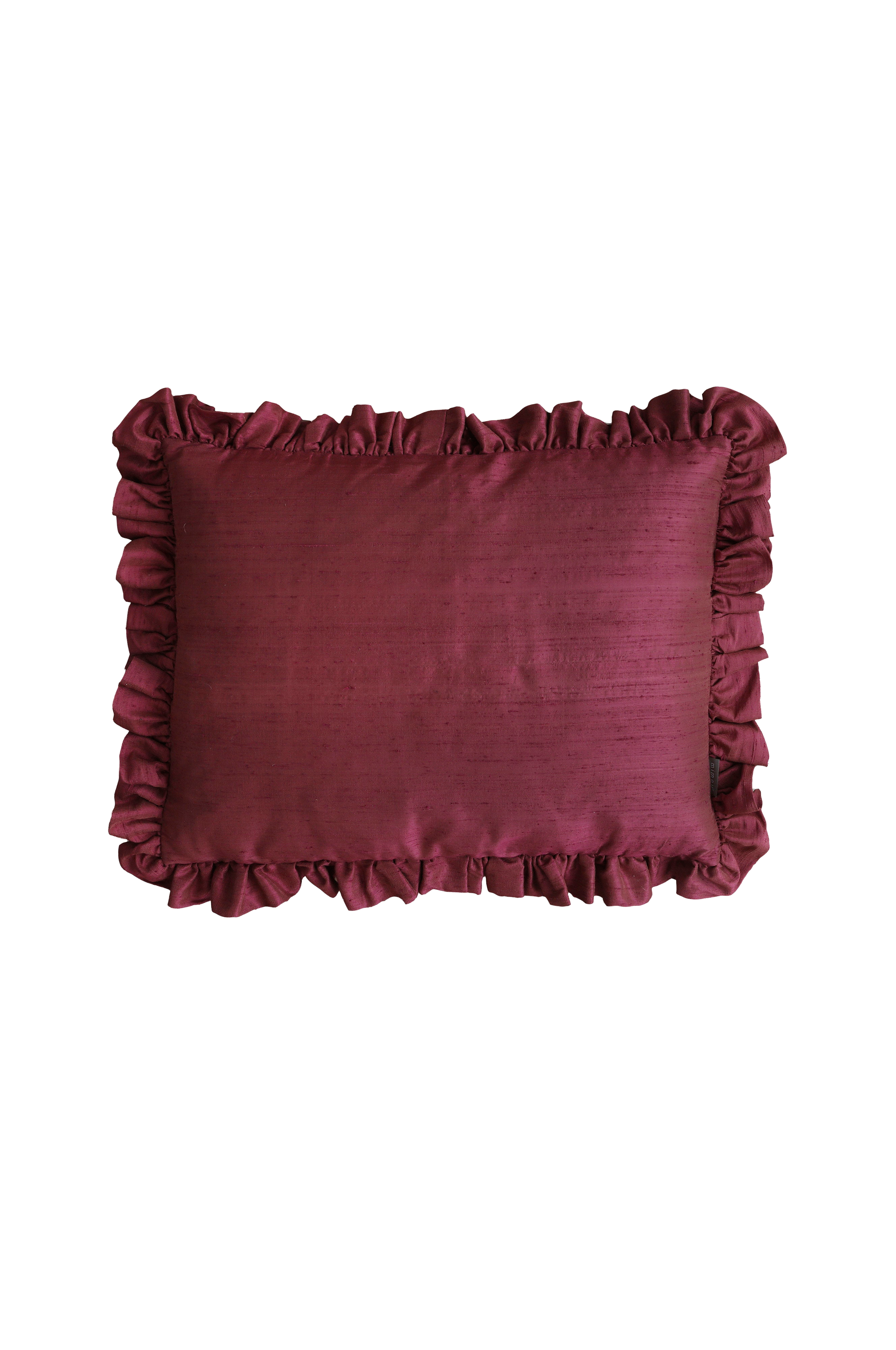 Handgjord kudde med volang av dubbelt tyg. Den stora prydnadskudden har en sida av kraftigt portugisiskt lin och en sida av återbrukad, handvävd siden. Att återanvända material i stället för att nyproducera är ett hållbarare val och ett steg i att minska textilavfall. Säljs inklusive innerkudde av andfjäder. Storlek: 50X60 cm + 7 cm volang