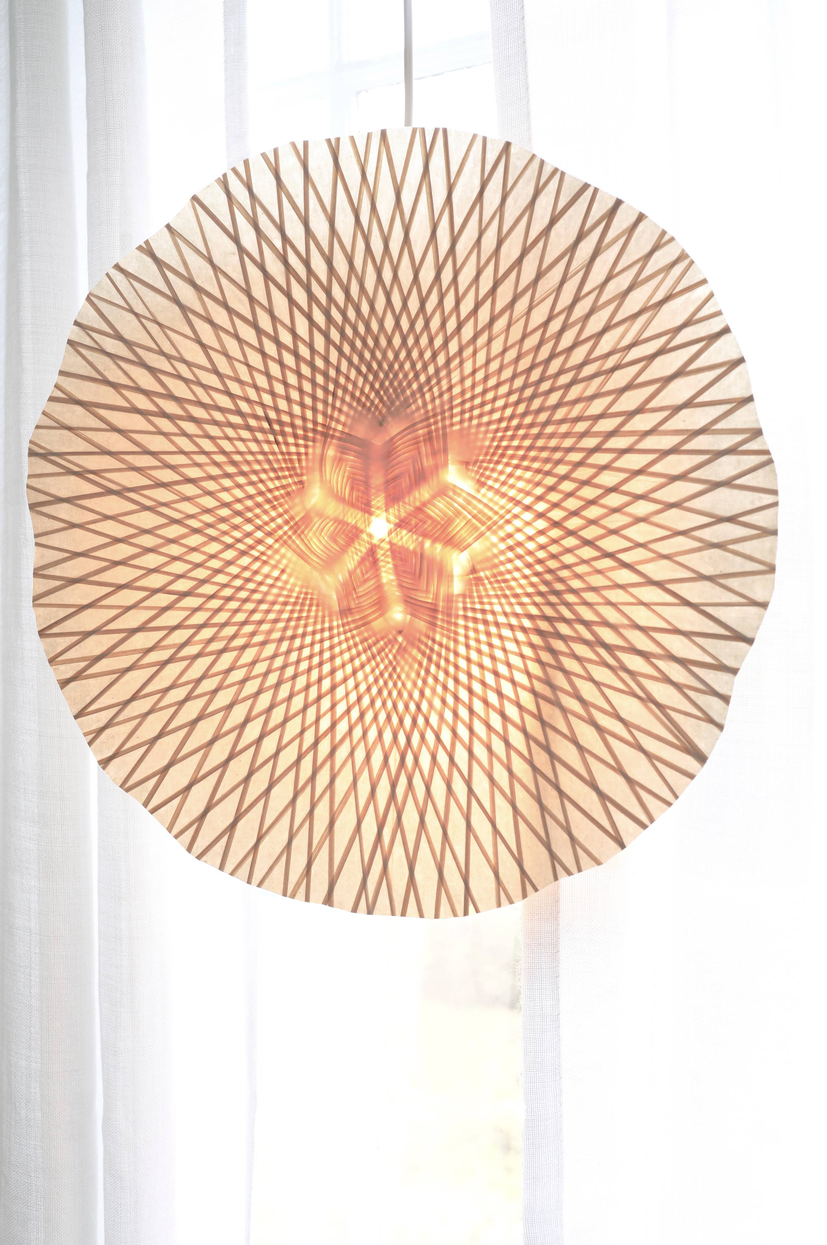 Lampskärmen Anemone är lika vacker i fönstret på julafton som en tänd stjärna, som den är hängande året runt som en fönsterbelysning. Dess organiska form med dubbla lager är anemonliknande och ger ett varmt och vackert sken. I sin handgjorda kollektion utforskar mimou traditionella tillverkningstekniker och samarbetar med skickliga hantverkare i småskalig produktion. Lampan Anemone är ett bra exempel på detta. Fint bambupapper kombineras med papier machè-teknik på en ram av flätad bambu. Anemone är helt handgjord i bambu. Säljs utan lampsladd och ljuskälla. Diameter: ca 43 cm djup: ca 11 cm välj en lampsladd med e27-uttag och en e27 led-ljuskälla. Om uttaget har 2 ringar fäster du dessa på innerskärmen och trycker igenom ljuskällan. Om du har ett uttag utan ring, tryck igenom ljuskällan och skruva fast den i uttaget. Lampskärmen väger så lite att den kan vila på ljuskällan. Vänligen notera! Det är mycket viktigt att du använder en led-ljuskälla som inte alstrar värme.