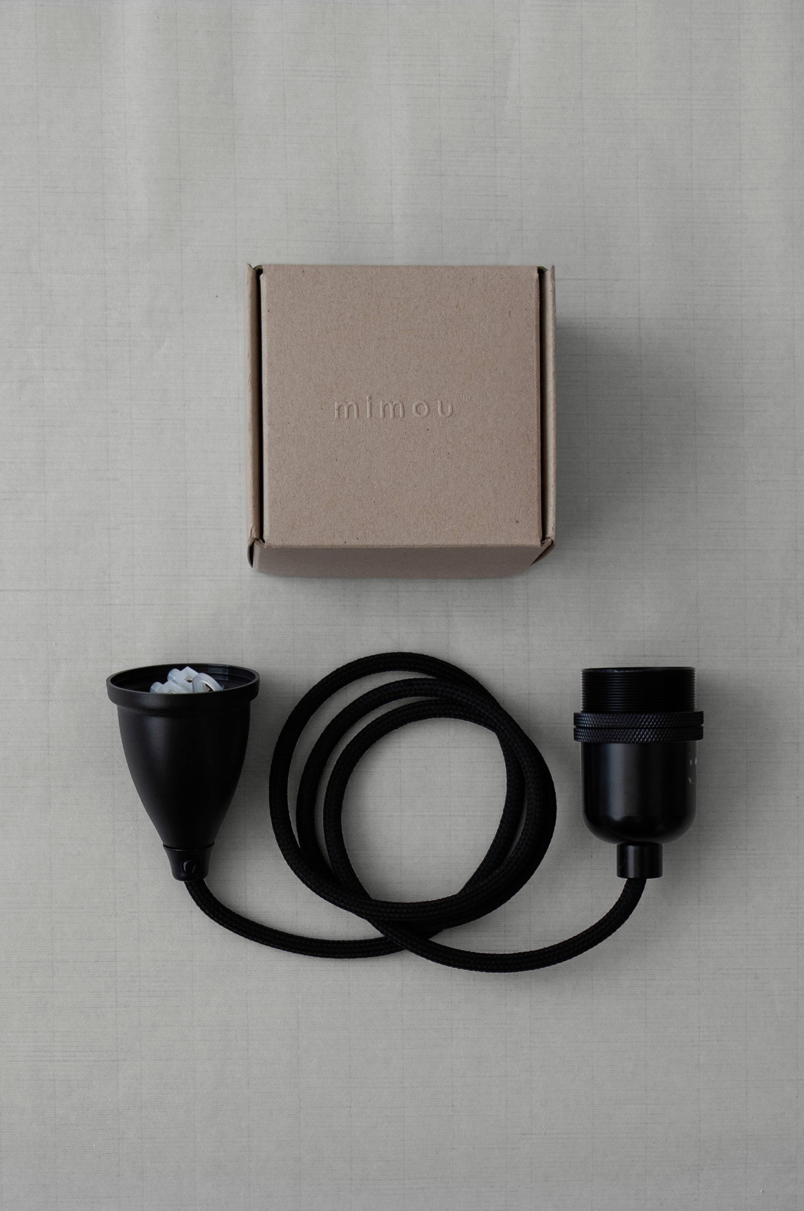 Svensktillverkat upphäng som passar till Mimous handtillverkade papperslampor. Takupphäng med 1,2 meter textilsladd, E27 lamphållare i metall och takkopp av silikon. Lamppropp ligger separat för egen montering.