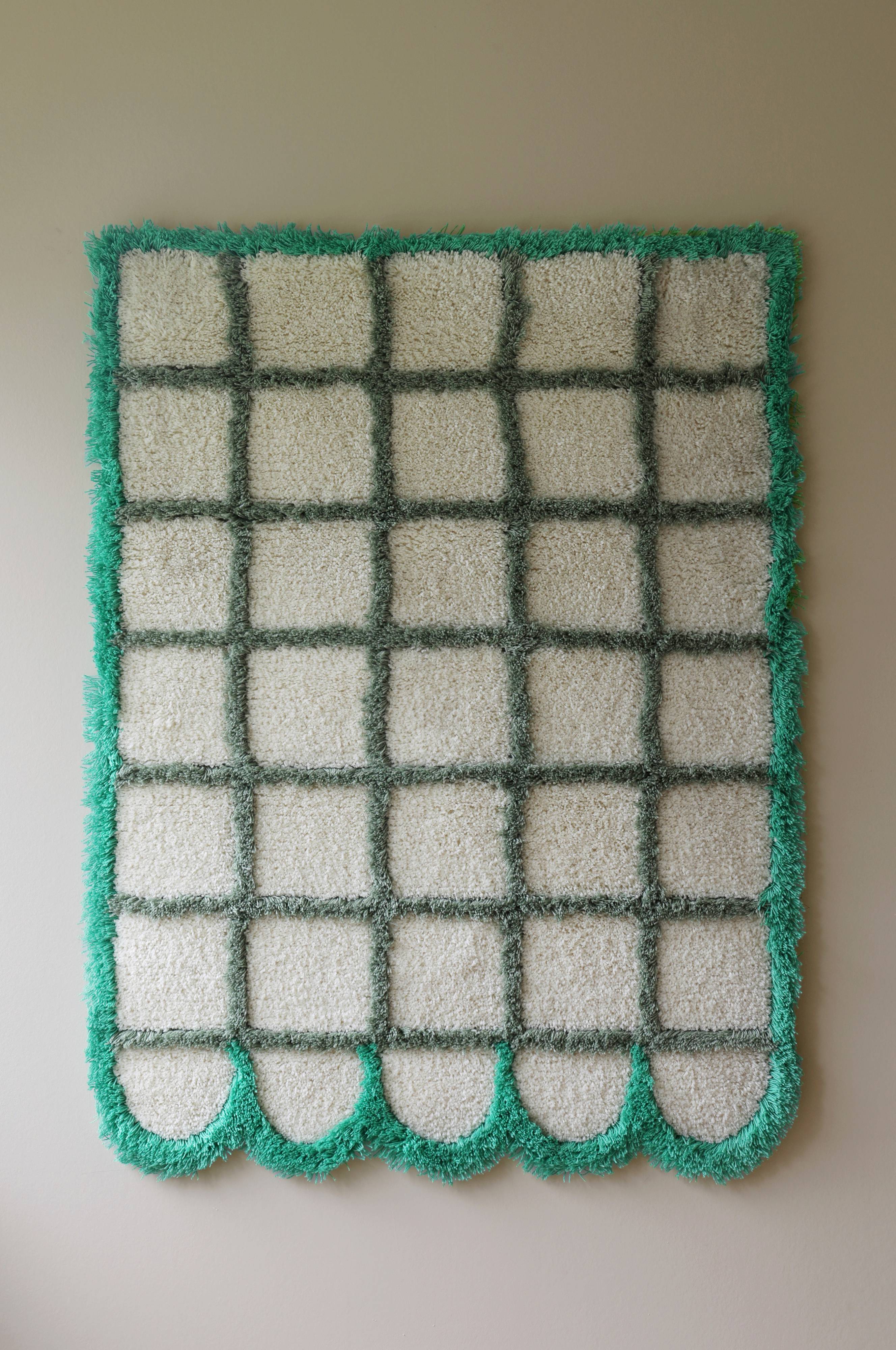 Ryamattan Object Check är lokaltillverkad i Blekinge av färgade ullgarner som blivit över i andra produktioner blandat med helt ofärgad ull. Att återanvända material i stället för att nyproducera är ett hållbarare val och ett steg i att minska textilavfall. Ryan är tuftad med olika höjder på garnet vilket skapar en mjuk och levande yta. Mattan kan användas som solitär men går även att lägga ihop flera mattor tillsammans för att skapa en större yta. Lika vacker att använda på golvet som ett konstverk på väggen. Färg: Ofärgad ull i mjukt offwhite med svart ram. Framsida: 100% Ull Baksidan är lätt gummerad så att den ligger stadigt på golvet. Skötsel: dammsugning, vädring, mattpiska. Storlek 100x140 cm.