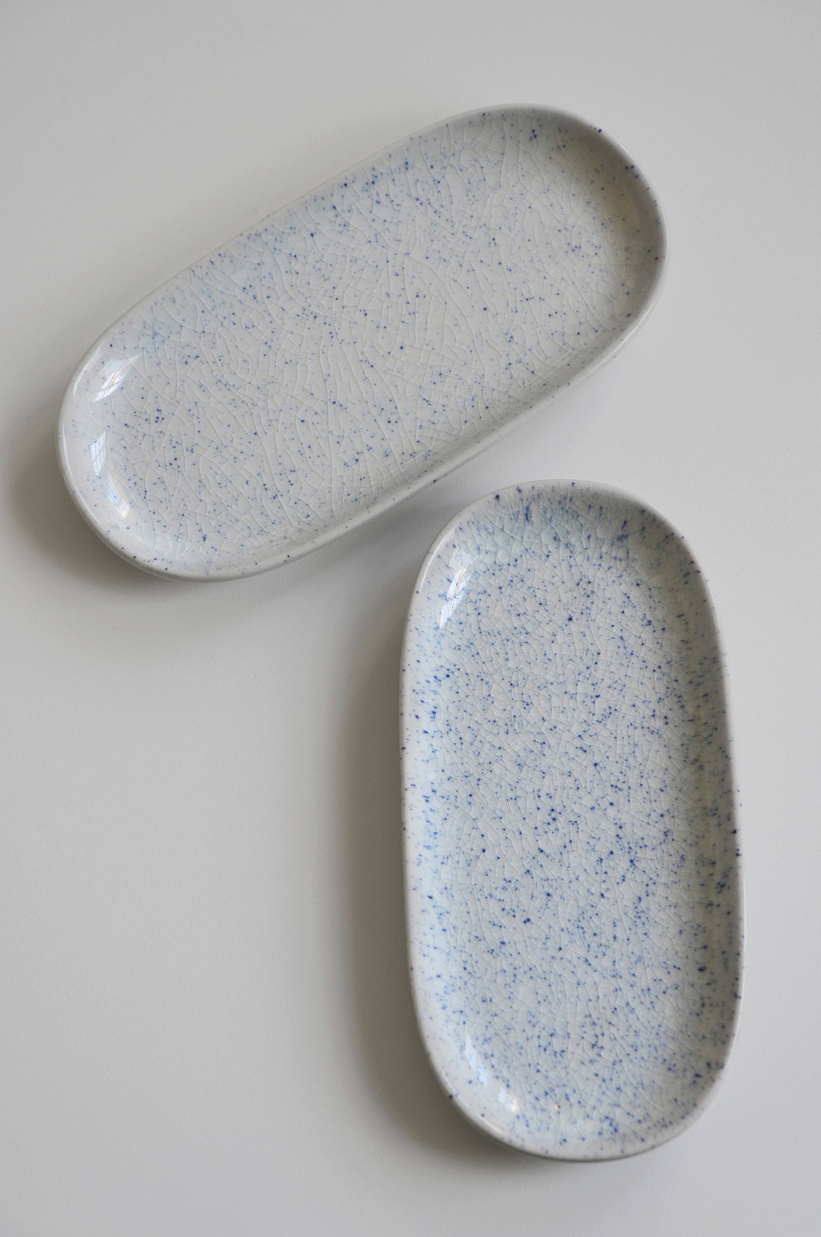 Minitallrik i keramik som är gjuten för hand. Storleken passar perfekt som brödassiette, att ha framme och samla smycken på och till efterrättstallrik. Tallriken är glaserad i glasklar celadonglasyr som ger fina drivningar i färgen som drar lite åt en svag aquaton samt en svagt krackelerad yta som är väldigt hård och tålig. Mimous keramik PURE är en serie servisdelar tillverkade i Lampang i norra Thailand. Området är känt för sin naturligt fina lera med hög kaolinhalt vilket gör keramiken väldigt tålig. Varje del gjuts i handgjorda formar och glaseras därefter i någon av Mimous glasyrer. PURE-servisen är tystlåten och har en utstrålning som man inte tröttnar på. Den kännetecknas av de nätta proportionerna som blir gedigna och stöttåliga på grund av den fina leran och de hårda glasyrerna. Tål mikrovågsugn och maskindisk. Storlek 19x9 cm