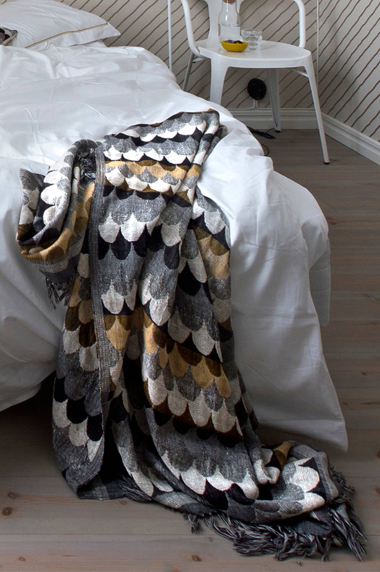 Dekorativ pläd som vävts för hand av handspunna trådar i siden och ull. Det vackra mönstret skiftar i mjuka färgtoner och finns även som kudde. Pläden består av 60% ull och 40% siden. 30 grader skonsam maskintvätt i ullprogram, kemtvätt eller försiktig handtvätt i kallt vatten. Storlek 130x170 cm