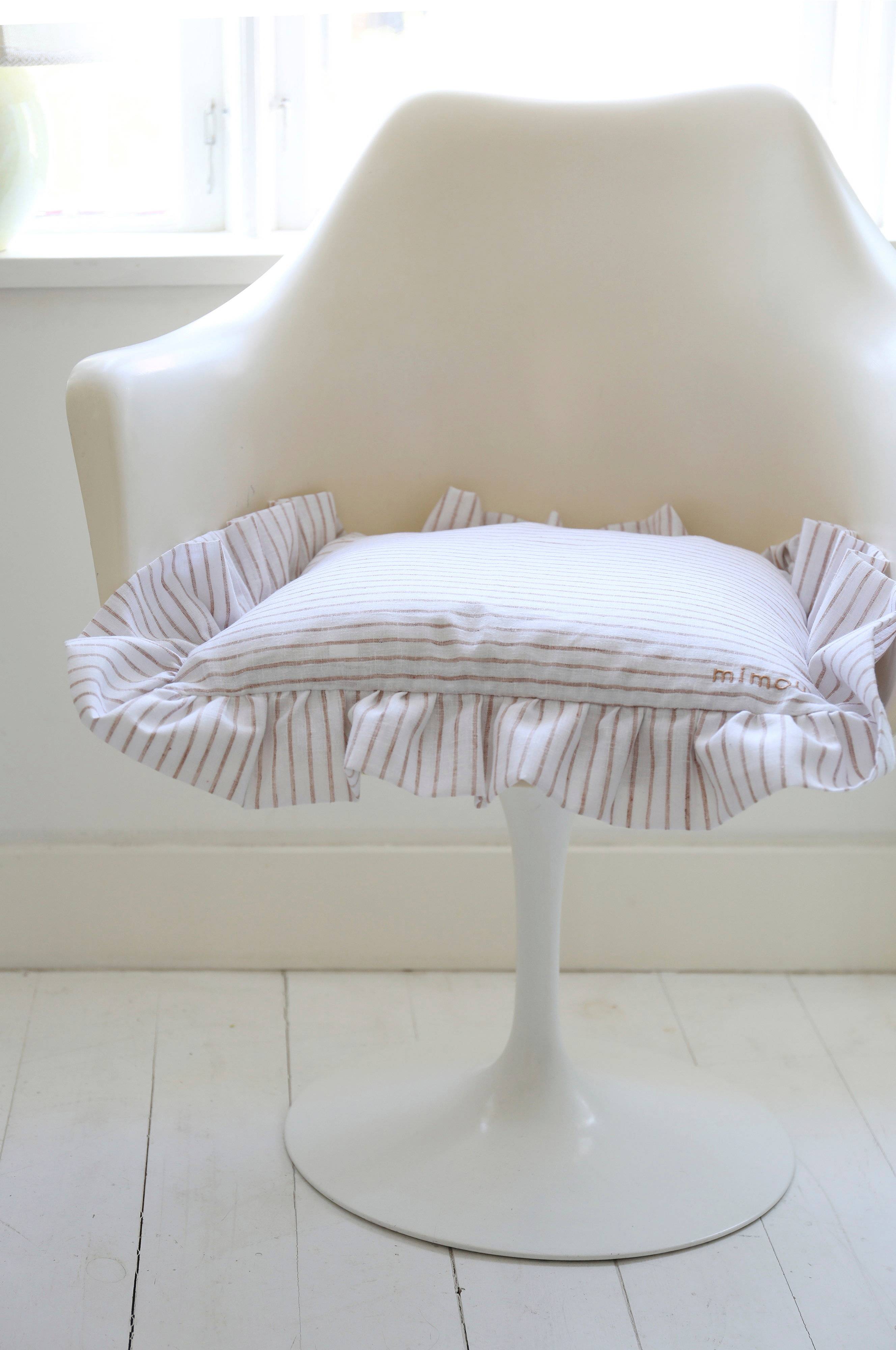 Handgjord kudde med en volang i dubbla lager som är skräddarsydd av överblivna tyger från klädindustrin. Att återanvända material istället för att nyproducera är ett mer hållbart val och ett steg i att minska textilavfallet. Säljs inklusive en innerdyna tillverkad av ankfjäder som är Oeko-Tex®-certifierad. Storlek: 45X45 cm + 10 cm volang. Bomull.