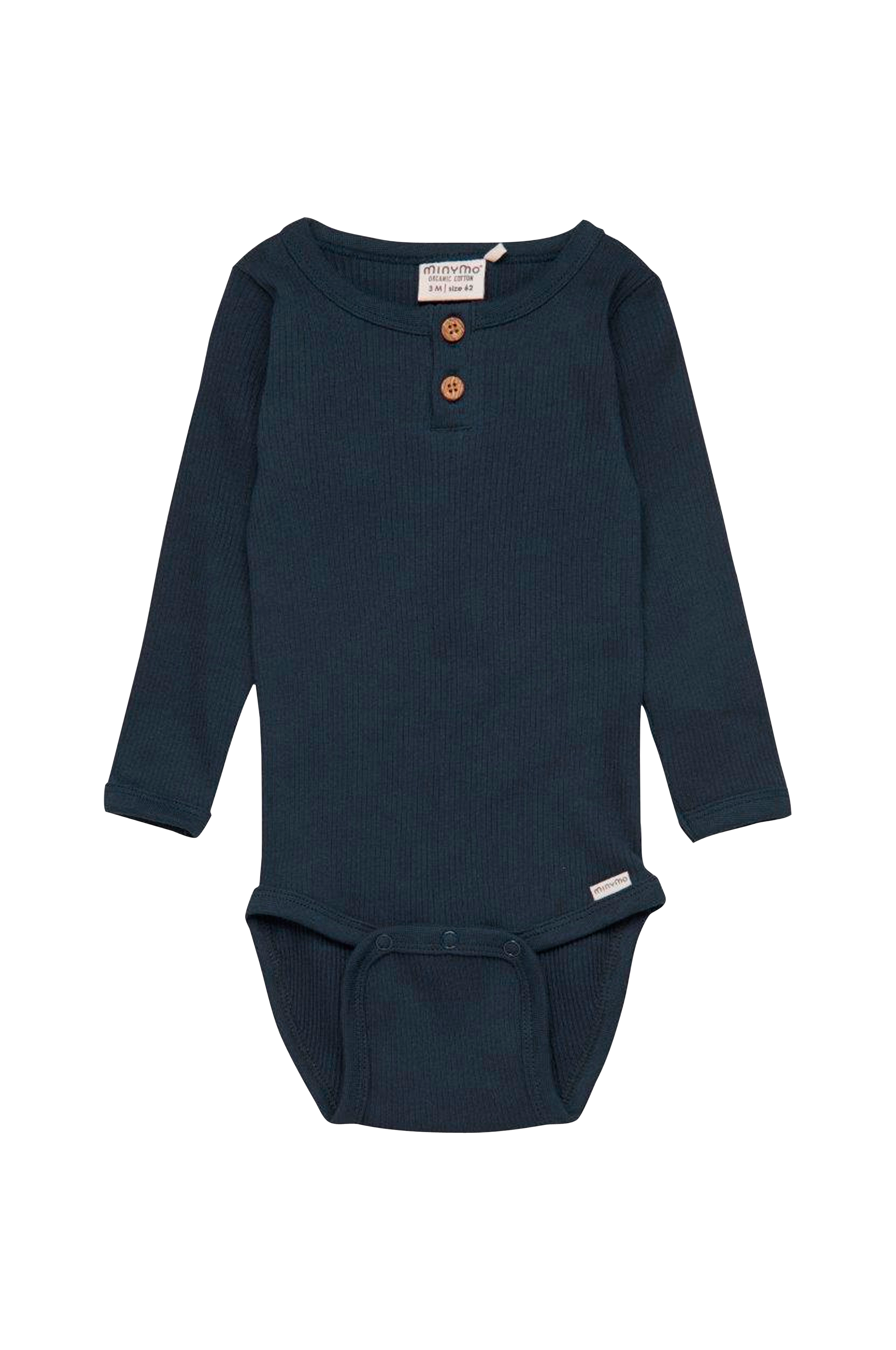 • Ribbstickad modell i trikå• Rund hals med kort sprund och knapp• Lång ärm• Tryckknappar i grenen