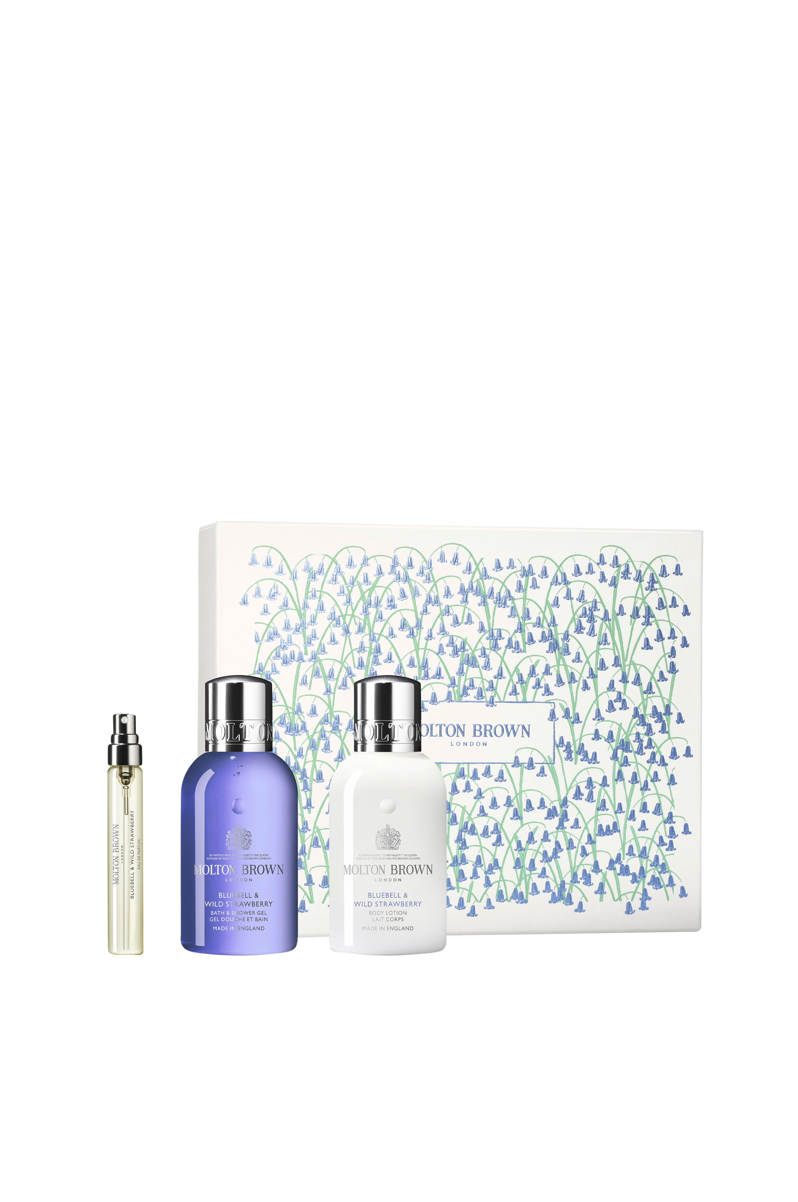 Molton Brown Bluebell & Wild Strawberry Travel Gift Set är en blommigt-fruktig presentask som tar dig till en frisk vårskog. Med noter av saftiga smultron, daggig blåklocka och lätt drivved är detta den perfekta presenten till mors dag eller något annat speciellt tillfälle.