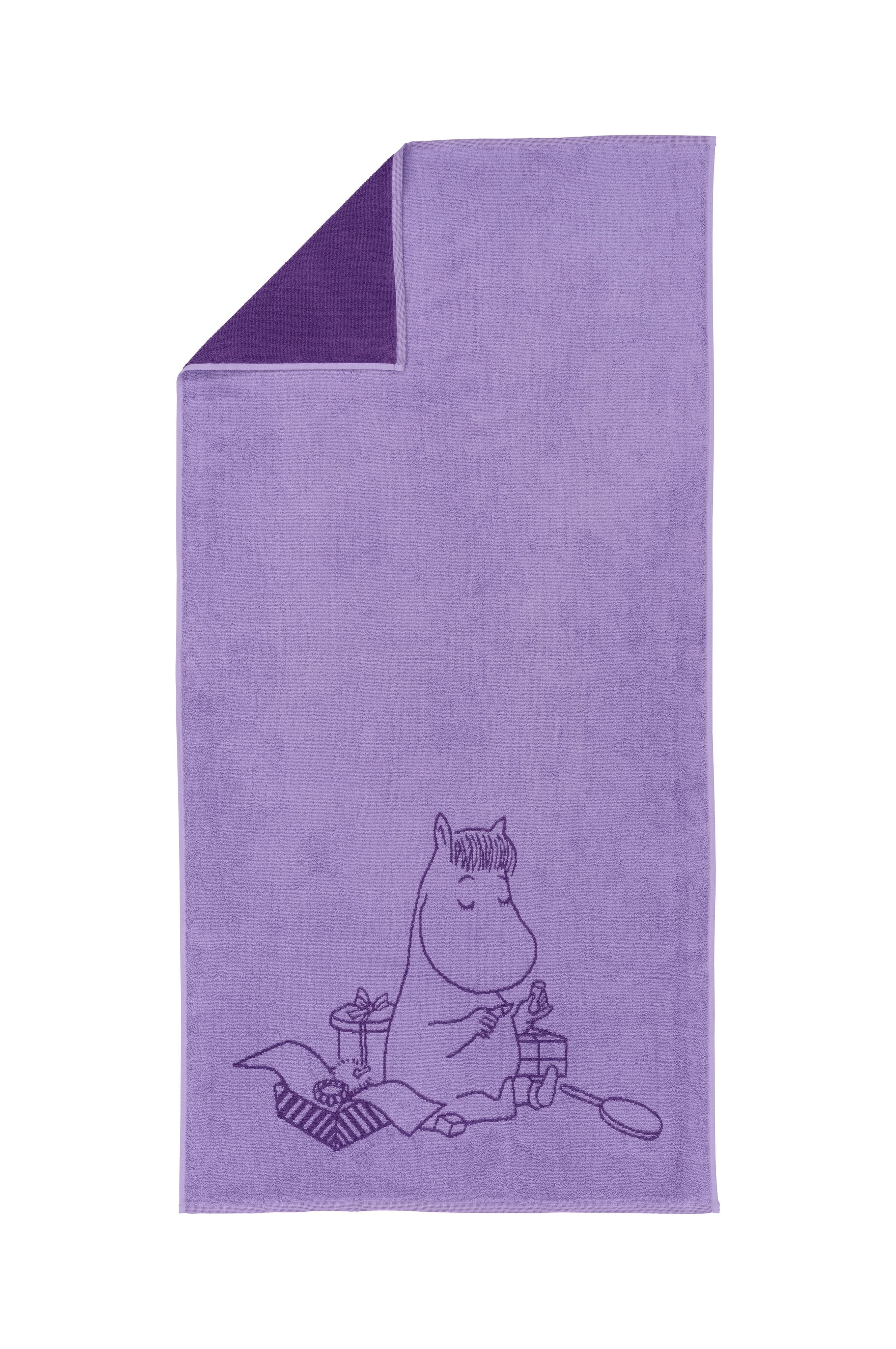 Svep in dig i en mjuk och mysig Mumin-badhandduk. Snorkfröken reser till franska Rivieran. Där köper hon nya kläder och minglar med kändisar. Men efter ett tag bleknar glansen av hennes nya tillvaro och hon längtar tillbaka till det enkla livet i Mumindalen. Moomin Arabia badhand. 70x140 Snorkfröken lila