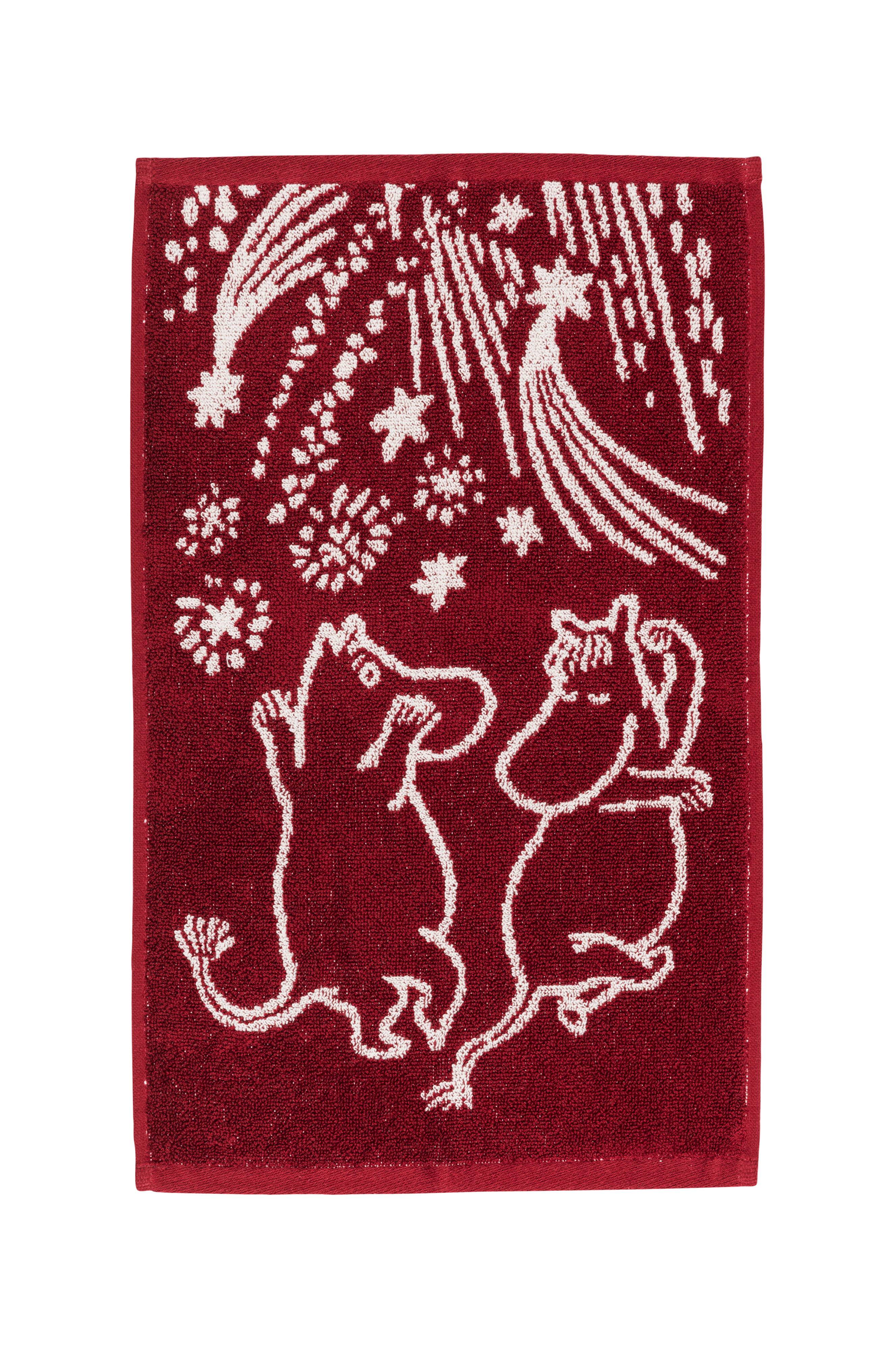 Torka händerna på en mjuk och mysig muminhandduk! Kollektionen Moomin 80 Festliga Stunder hyllar samhörighet och vänskap. Låt oss fira gemenskapen och visa tacksamhet för våra vänner, var de än befinner sig! Moomin Arabia, handduk, 30x50 cm, Festliga Stunder, GOTS