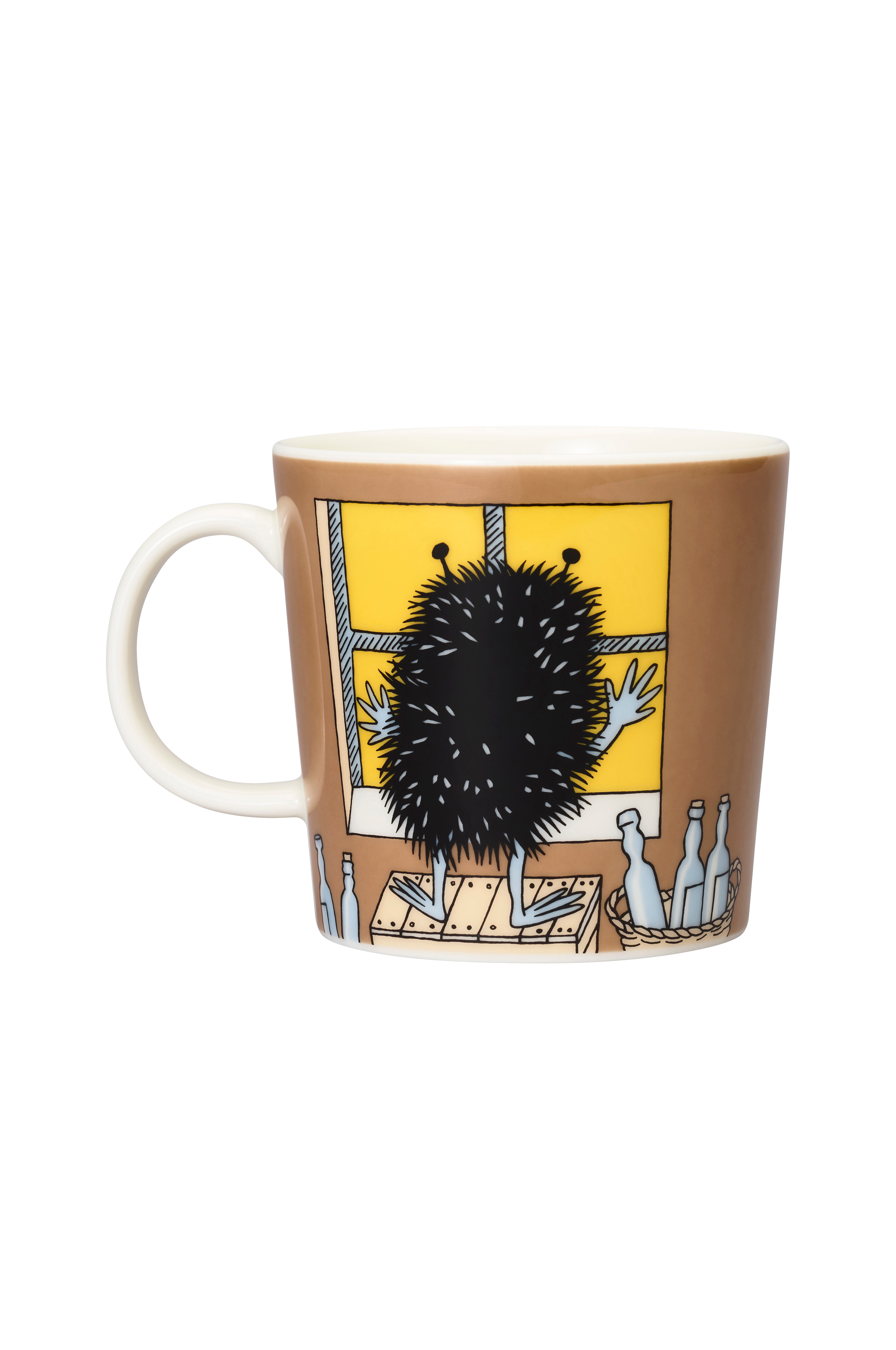 Stinky är skurken i Mumindalen, men en mycket trevlig sådan. Det springer omkring en lekfull hund i Mumindalen som har stulit Muminmammans väska. Stinky får tag i hundens svans och hunden släpper taget om väskan. Muminmamman får tillbaka sin väska. Moomin Arabia, mugg 0,3L, Stinky i aktion.