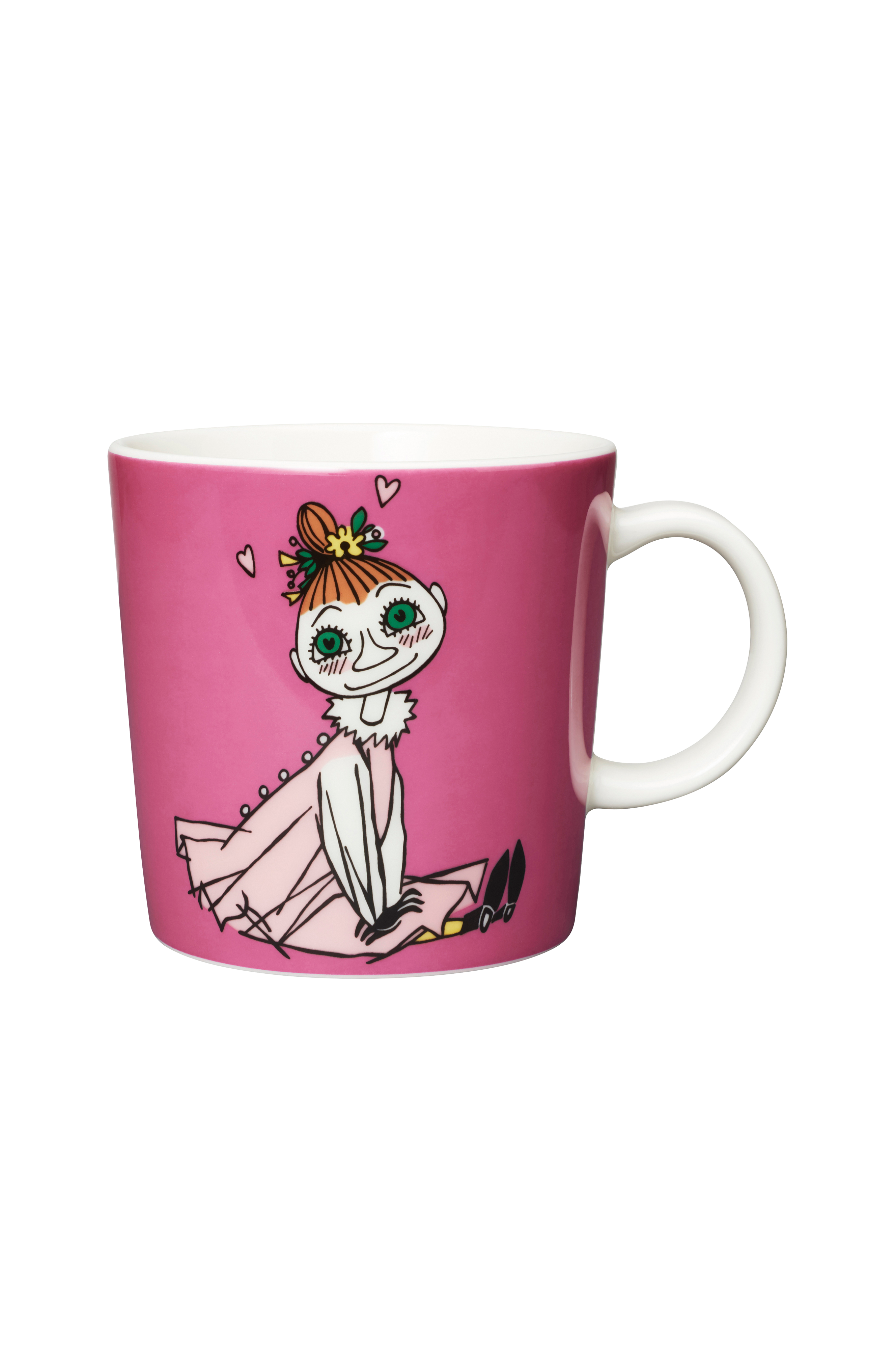 Mymlan drömmer om att hitta kärleken. Hon blir lätt förälskad och är särskilt förtjust i Polismästaren. Hon är snäll och hjälpsam. Mymlan är Lilla Mys storasyster, men hon är lugnare. Moomin Arabia mugg 0,3L, Mymlan.