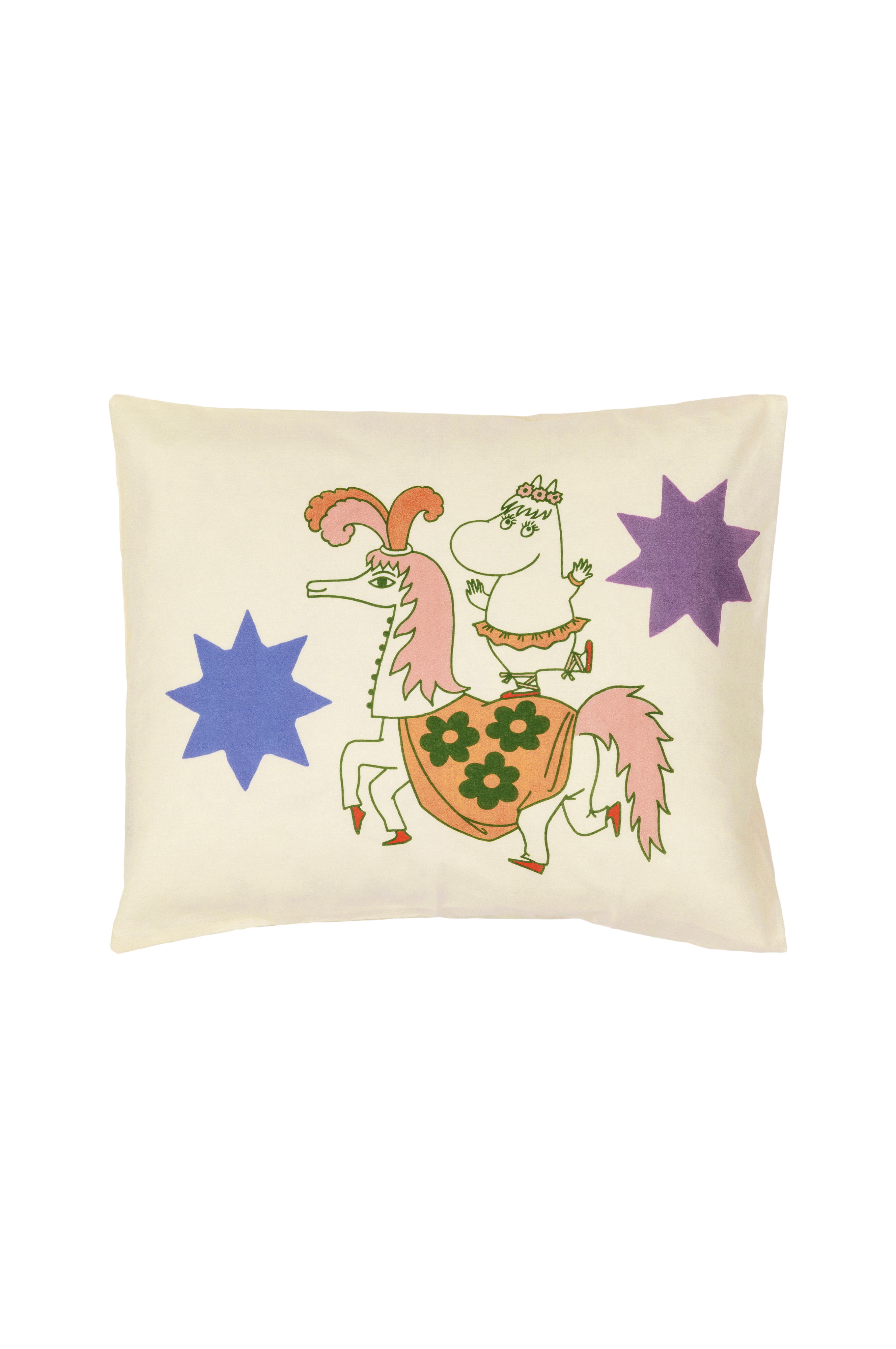 Låt Mumintrollet, Snorkfröken och Lilla My roa dig med cirkuskonster, dans och tindrande stjärnor tills ögonlocken går ihop. Med dämpade toner och ett ljuvligt bildspråk från Tove och Lars Janssons målarbok från 70-talet får sängklädeskollektionen ett tydligt retrouttryck. Tillverkat av 100 % ekologisk bomull. Moomin Arabia örngott 50x60, Cirkus
