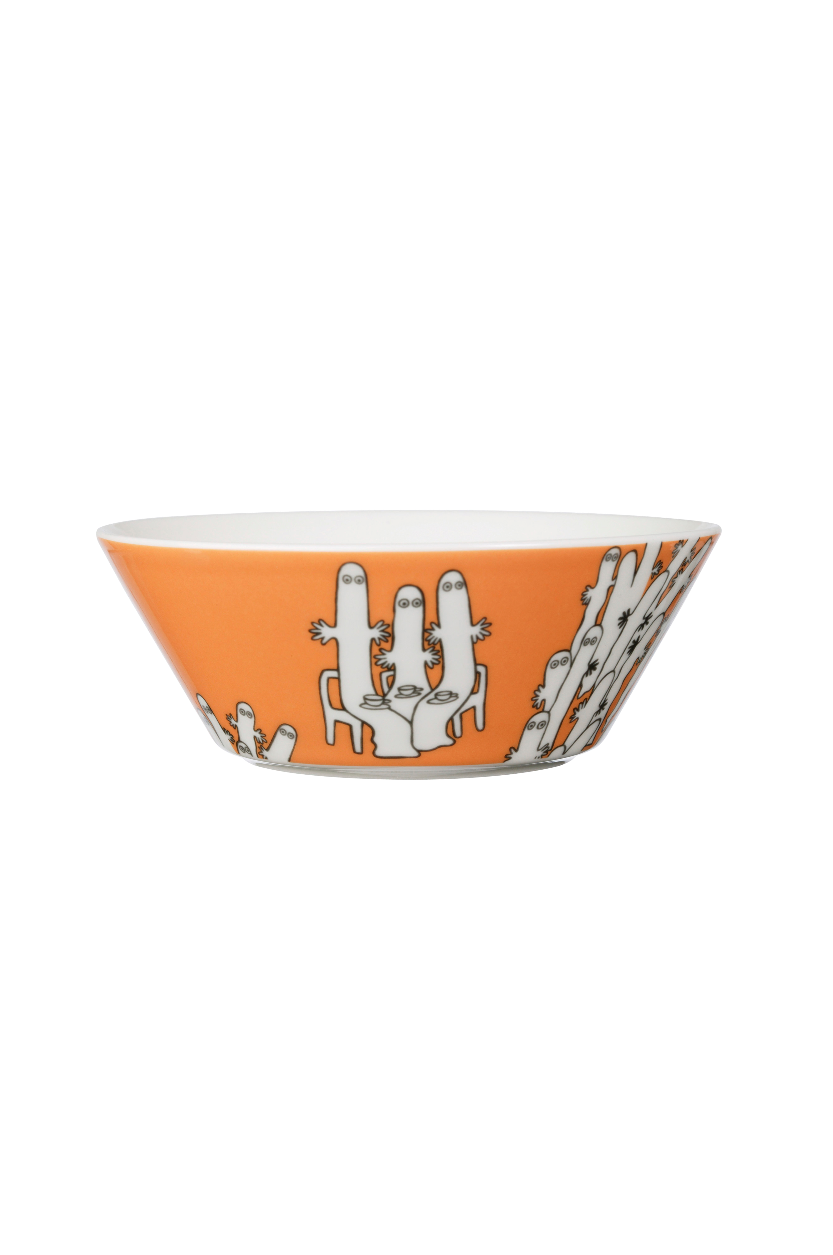 Hattifnattarna är små, vita spökliknande varelser som varken kan tala eller höra och inte heller ser särskilt bra. De behöver varken äta eller sova och sig tyst i stora grupper. De är normalt ofarliga men många är ändå rädda för dem. Vid åskväder blir de elektriskt laddade och kan ge ifrån sig stötar. Moomin Arabia skål 15cm Hattifnattar