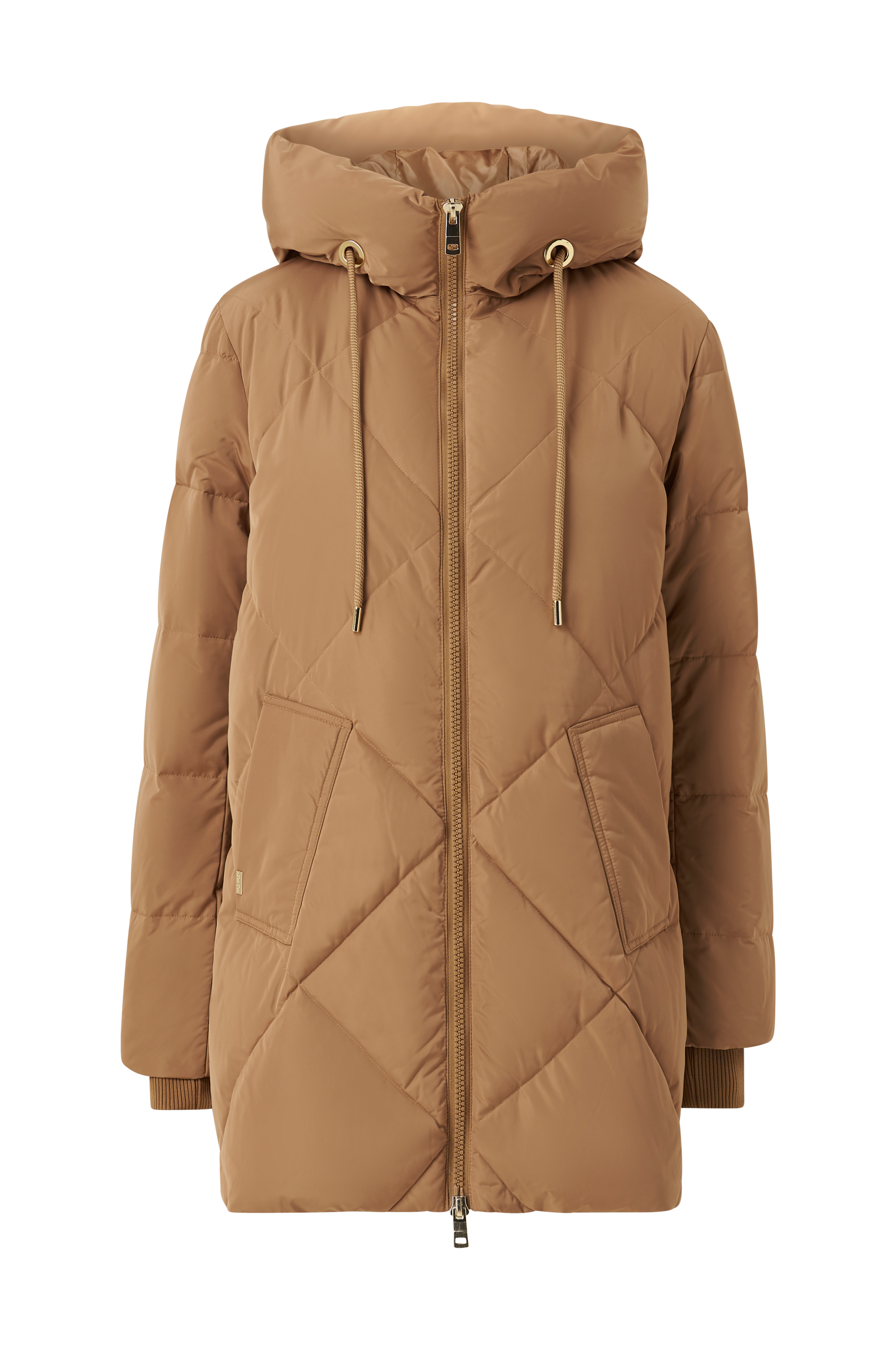 • Fast huva med dragsko • Tvåvägsdragkedja • Två fickor med tryckknapp • En innerficka med dragkedja • Ribbmuddar i ärmsluten • Längd: 84 cm i storlek S
