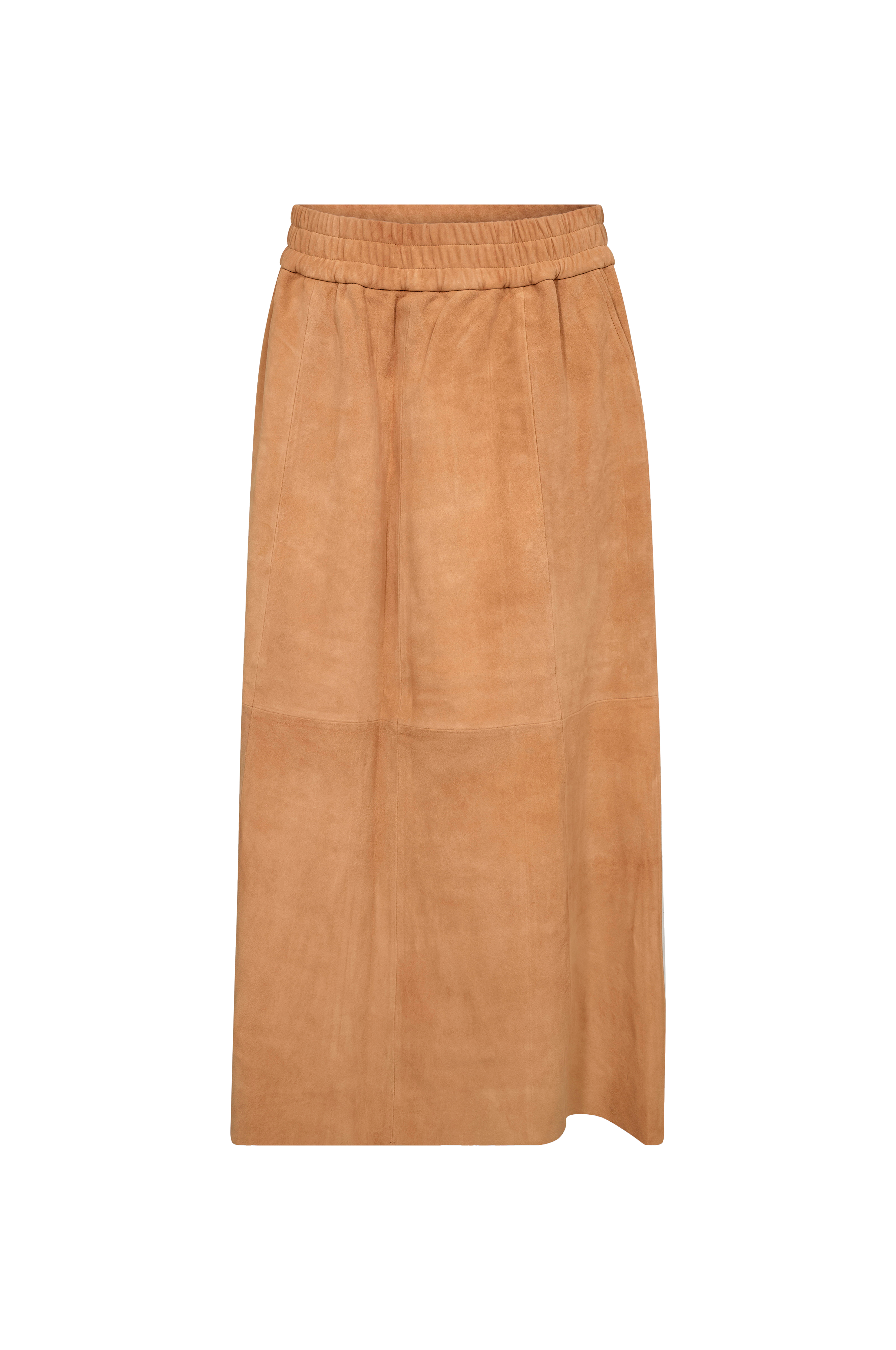 • Midikjol i mocka• A-linjeform• Elastisk midja• Fickor• Längd: 90 cm i storlek S