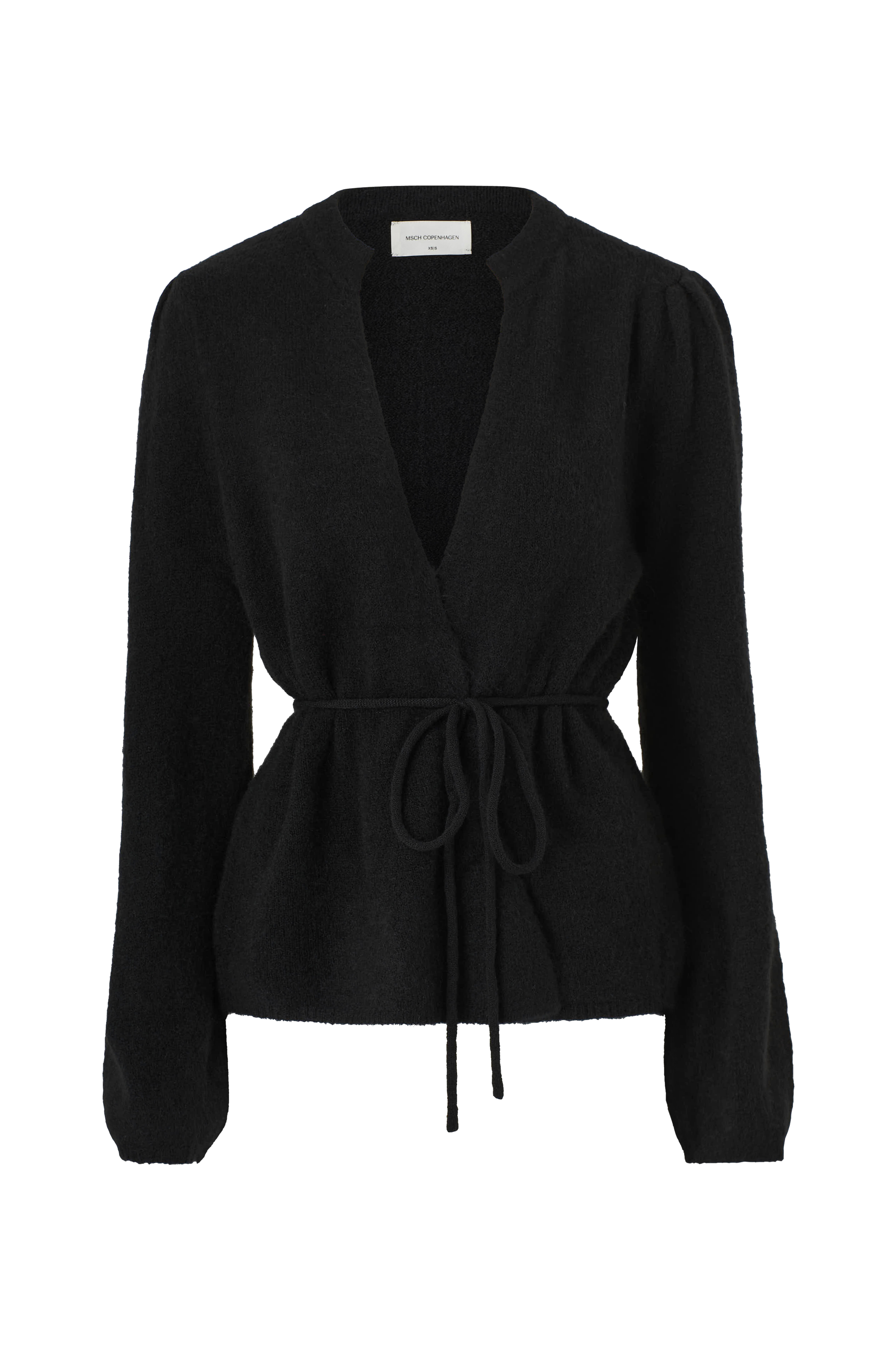 • Omlottmodell med hällor och smalt knytskärp i midjan• Rund hals med ribbkant• Vid, rak ärm med veck vid axeln• Smal ribbstickning nedtill och i ärmsluten