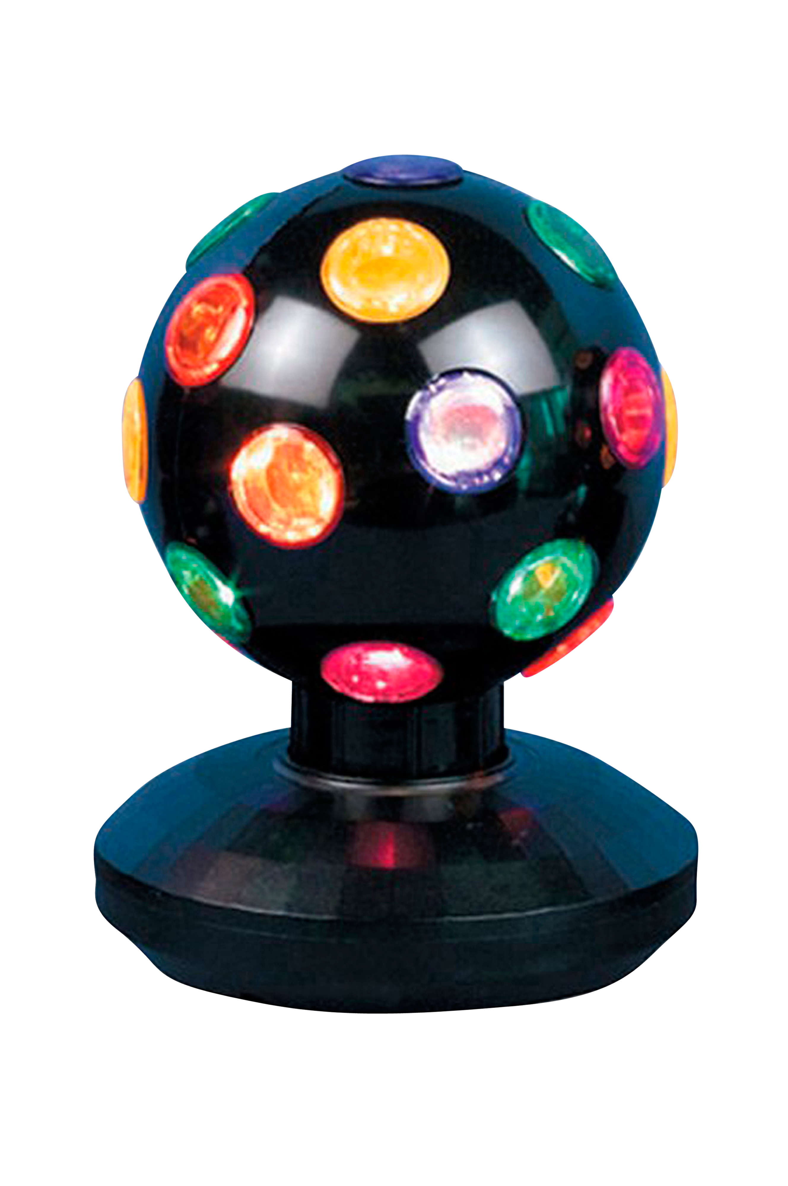Få den äkta discokänslan! Svart discokula på fot med lampor i många färger, 11 cm i diameter.