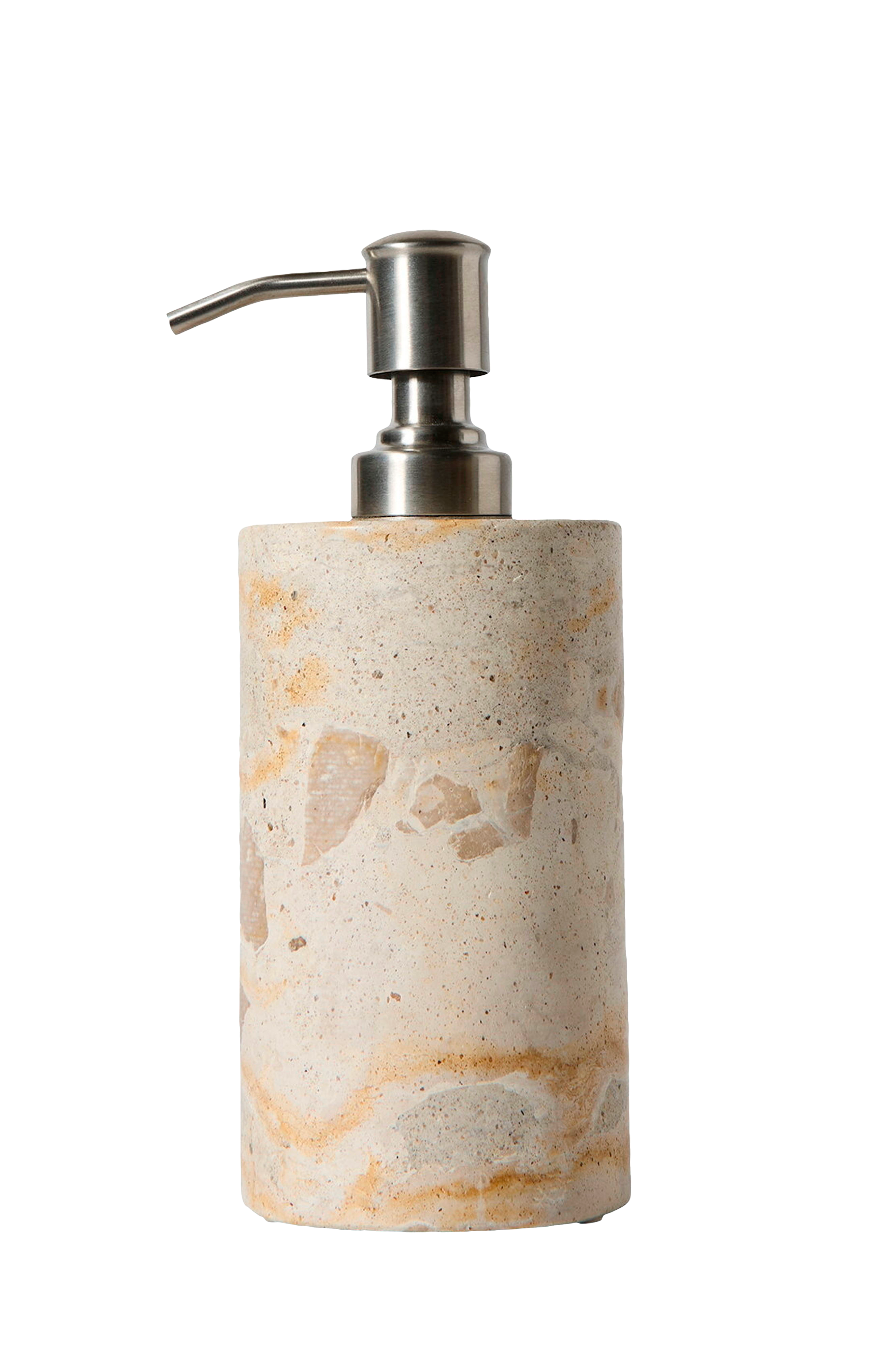 Den eleganta tvålautomaten är tillverkad av exklusiv marmor och kan användas ensam eller tillsammans med de andra marmorelementen i badrumsserien. Den naturliga variationen i färger och mönster gör varje Vita-produkt unik och skapar en vacker kontrast till andra material i badrummet.