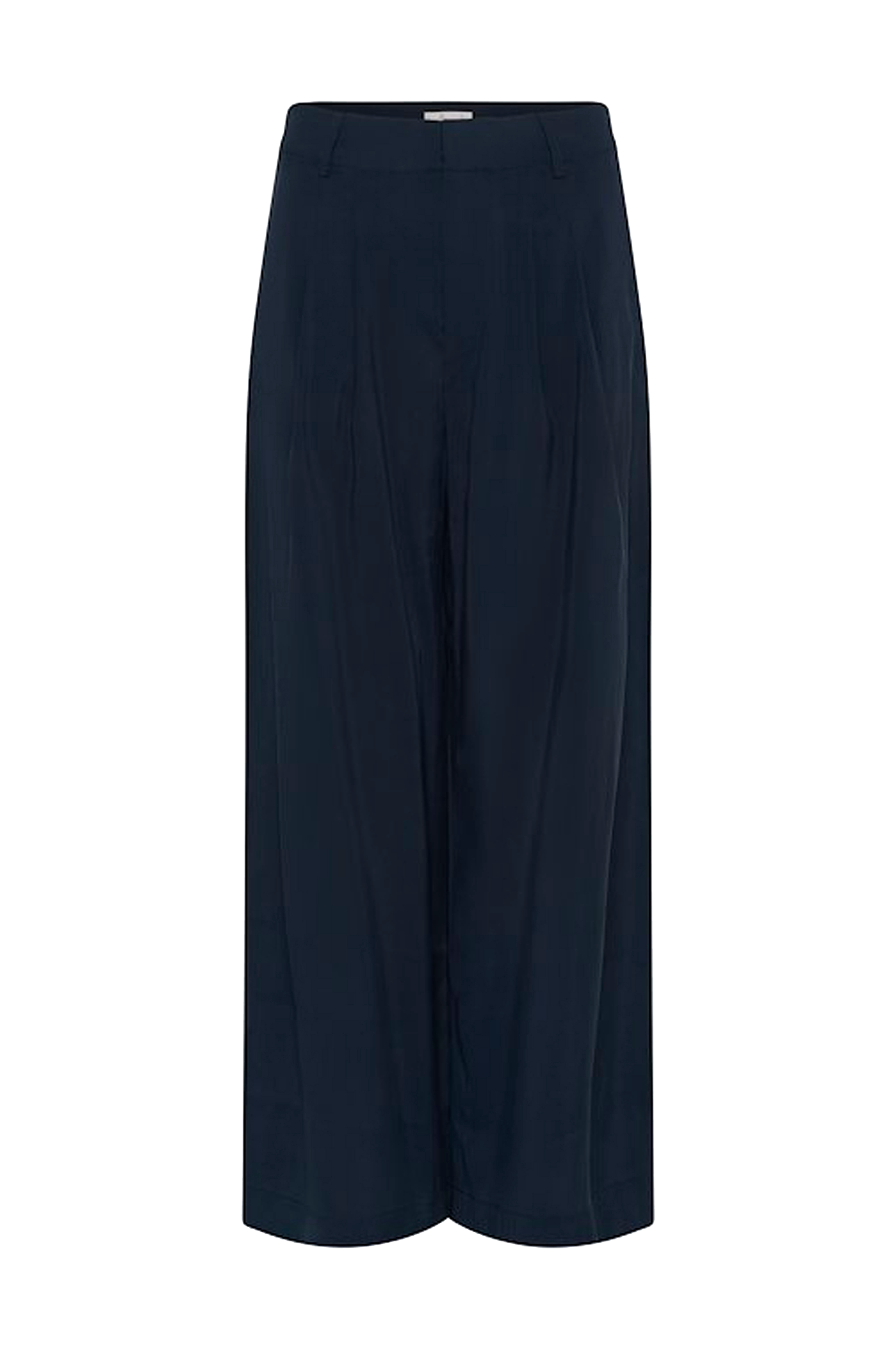 • Byxor i mjuk viskos• Hög midja• Vida ben• Fickor i sidorna• Fuskfickor bak• Hysk- och hakstängning i midjan• Dragkedjegylf• Beninnerlängd: 79 cm i storlek 36