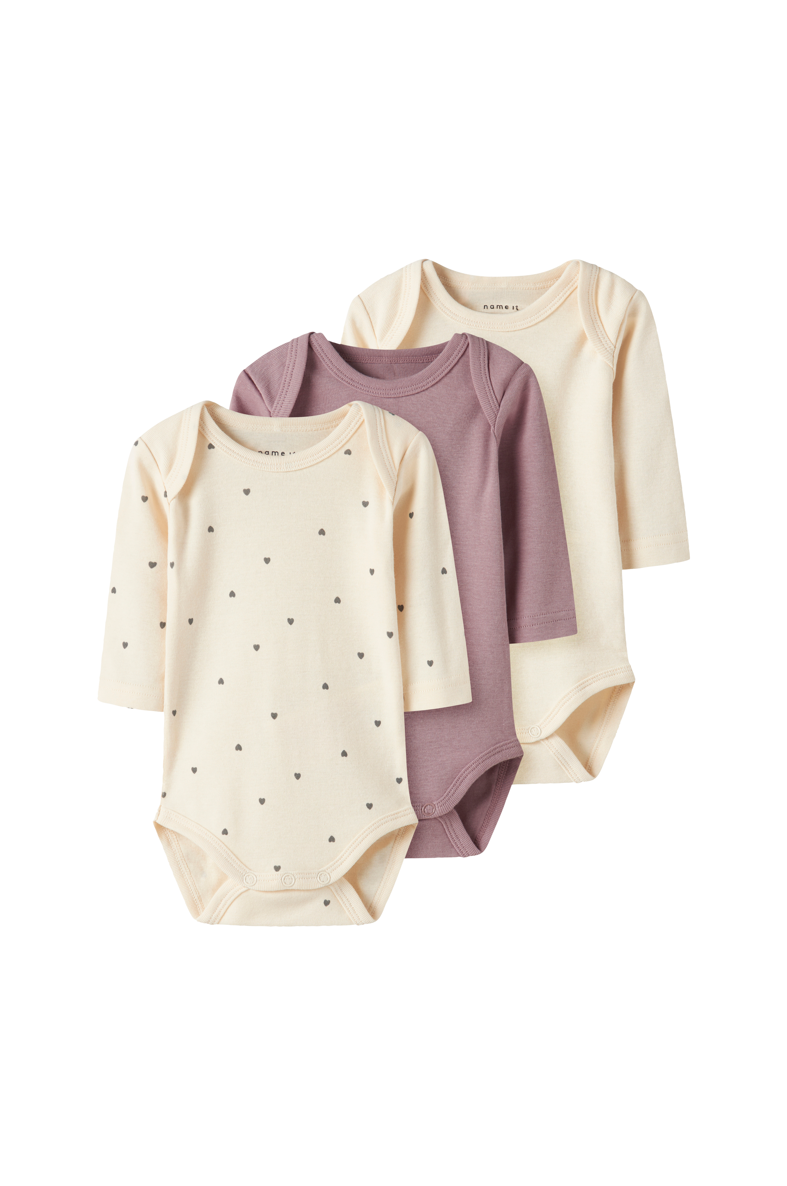 • 3-pack bodys med olika färger och mönster• Rund halsringning• Långa ärmar• Tryckknappar i grenen