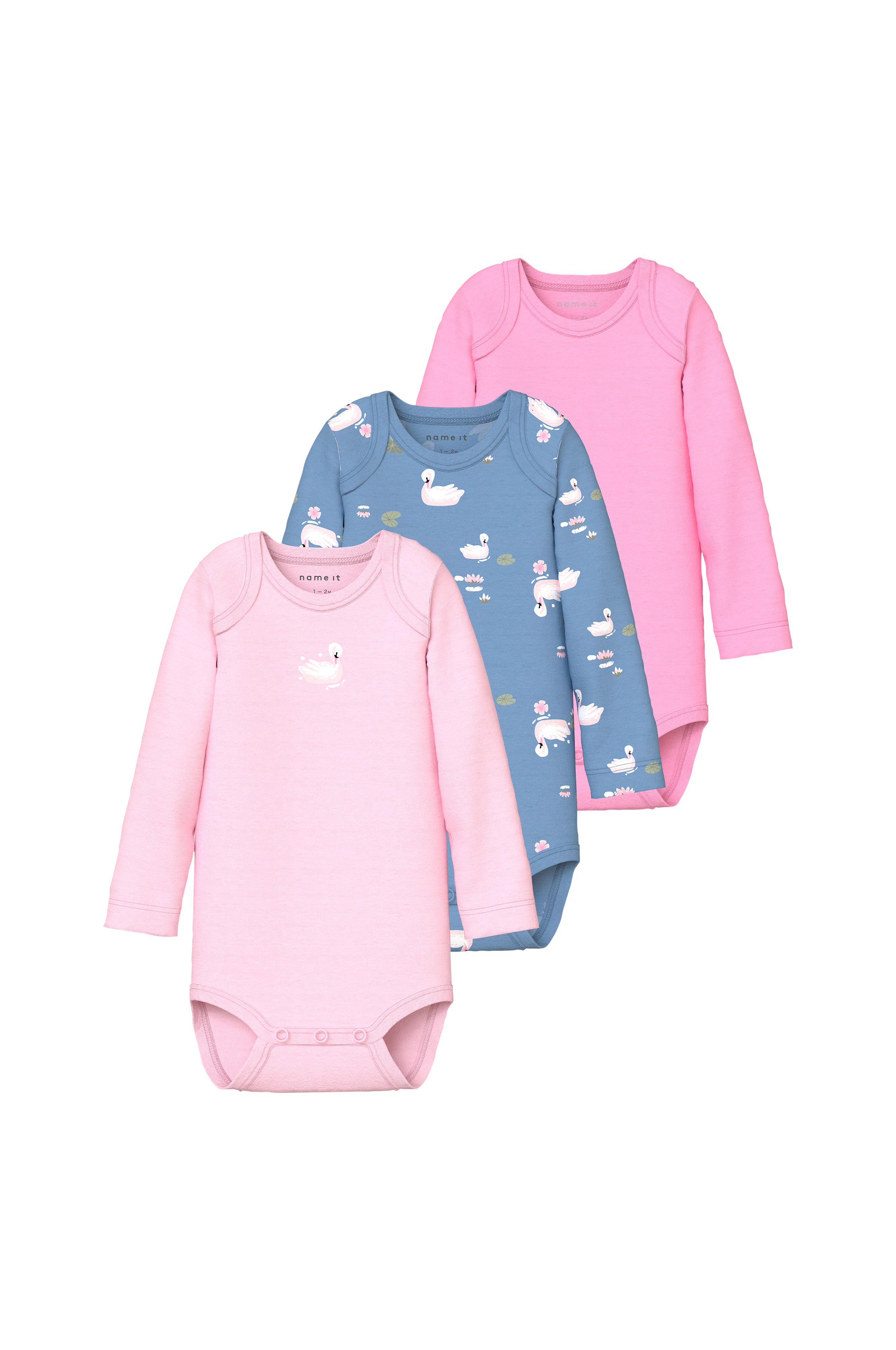 • 3-pack bodys med olika färger och mönster• Rund halsringning• Långa ärmar• Tryckknappar i grenen